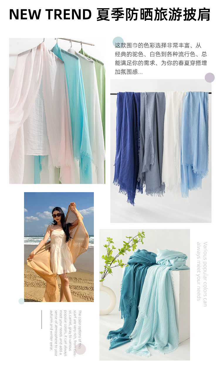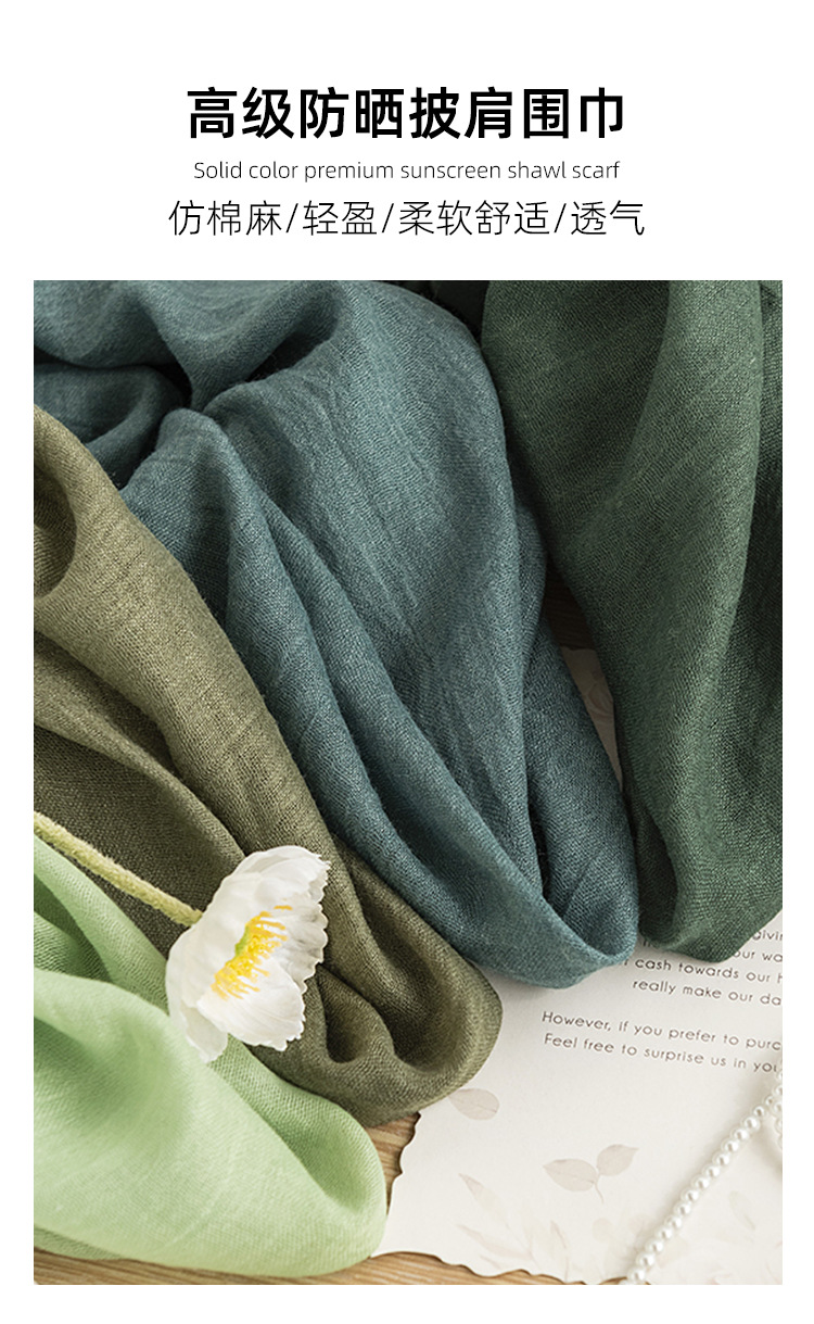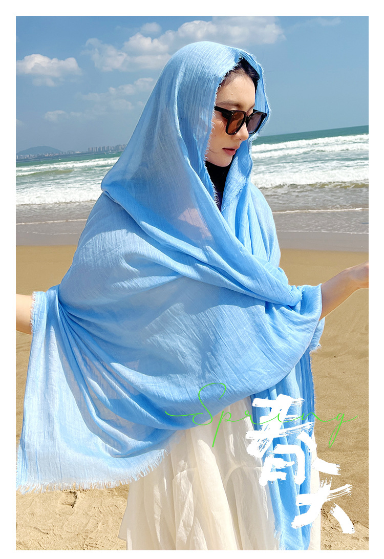 여름 여행 자외선 차단제 스카프 모조화와 린넨 목도리 여성의 고급 감각 해변 사막 실크 스카프 스카프 스카프 도매스토어 가기