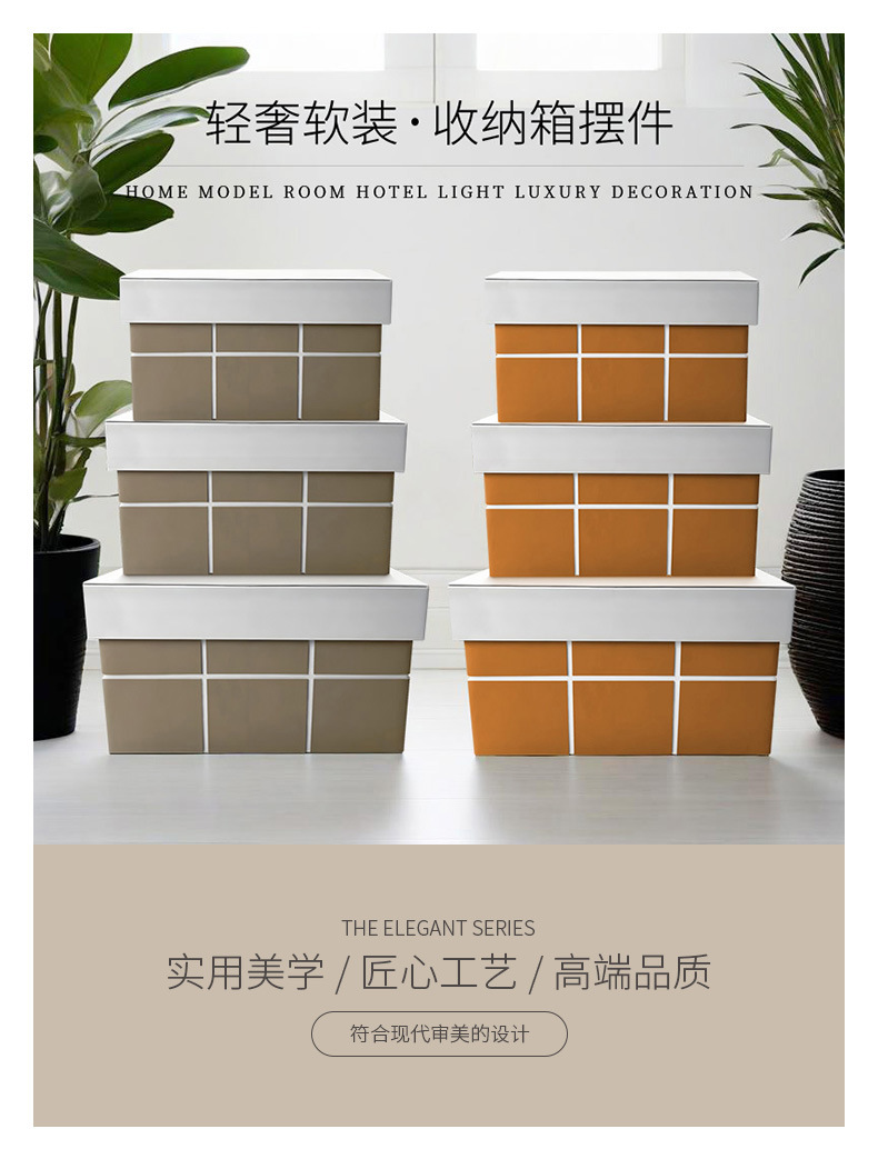 PU 가죽 대형 격자무늬 나무 가죽 수납함 소프트 데코 맞춤형 옷장 잡화 도매 침실 수납 아이템