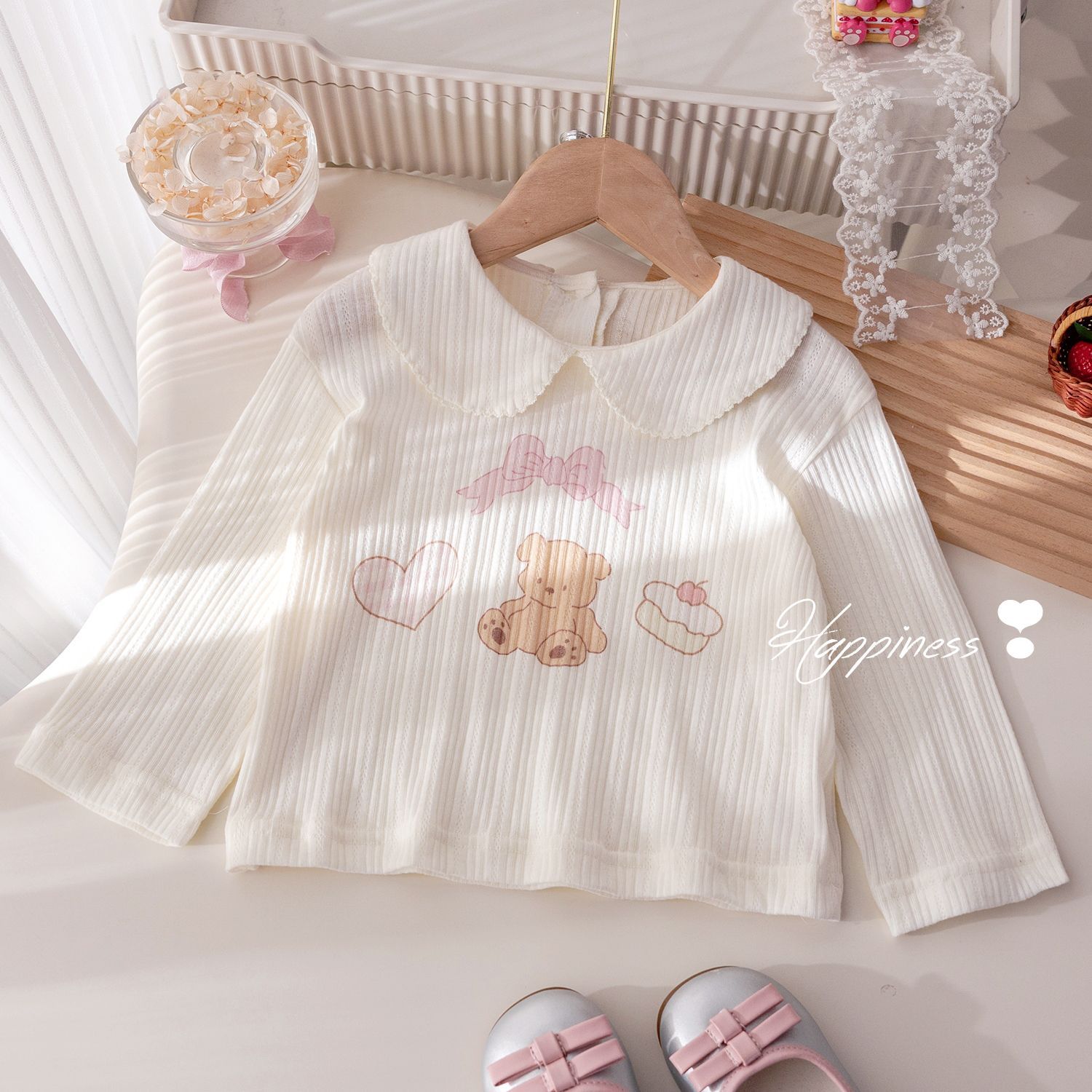 여아복 세트 2026 봄 스타일 세련된 인형 칼라 상의 여아용 한국 스타일 곰돌이 긴팔 투피스 세트