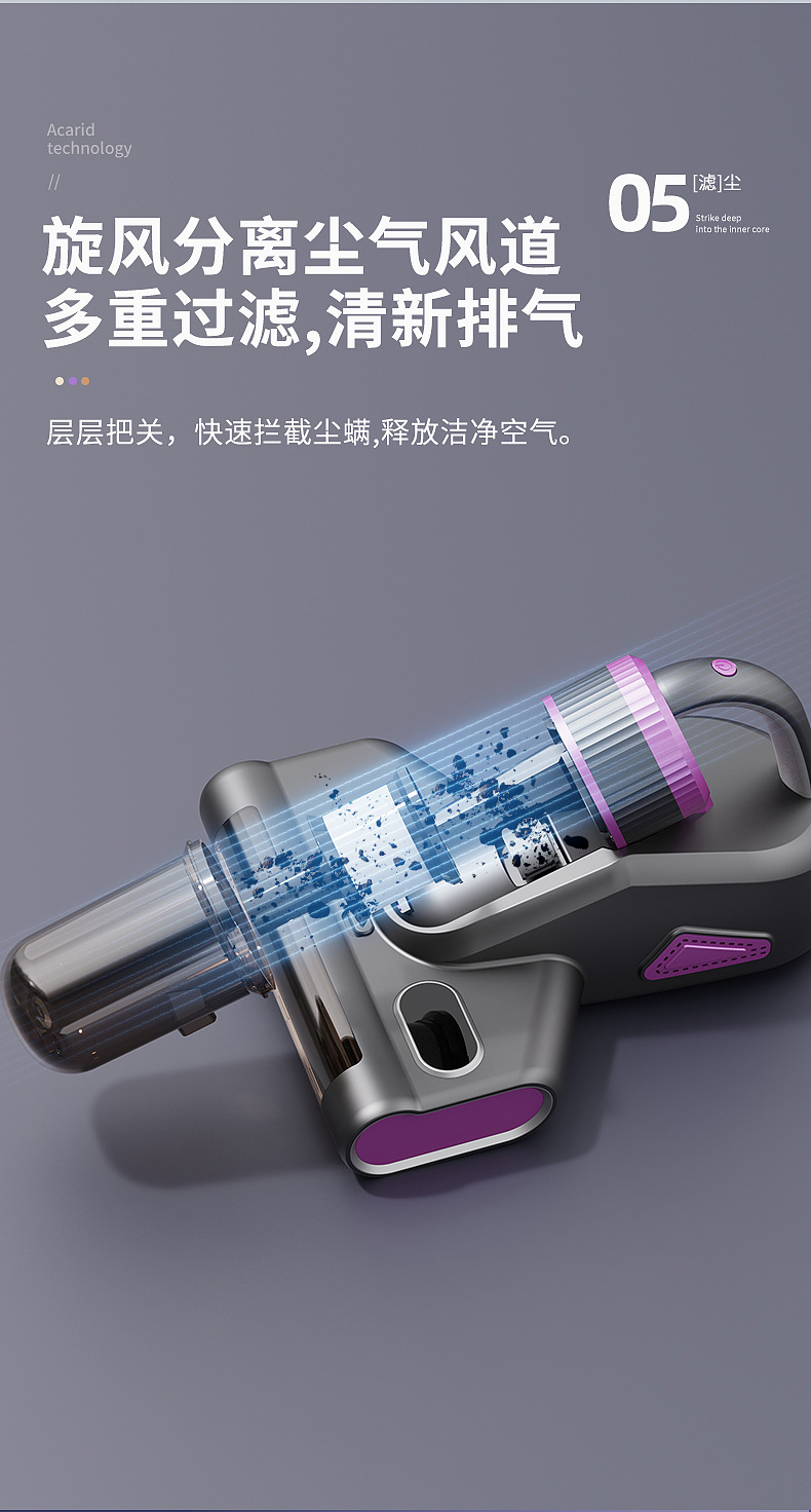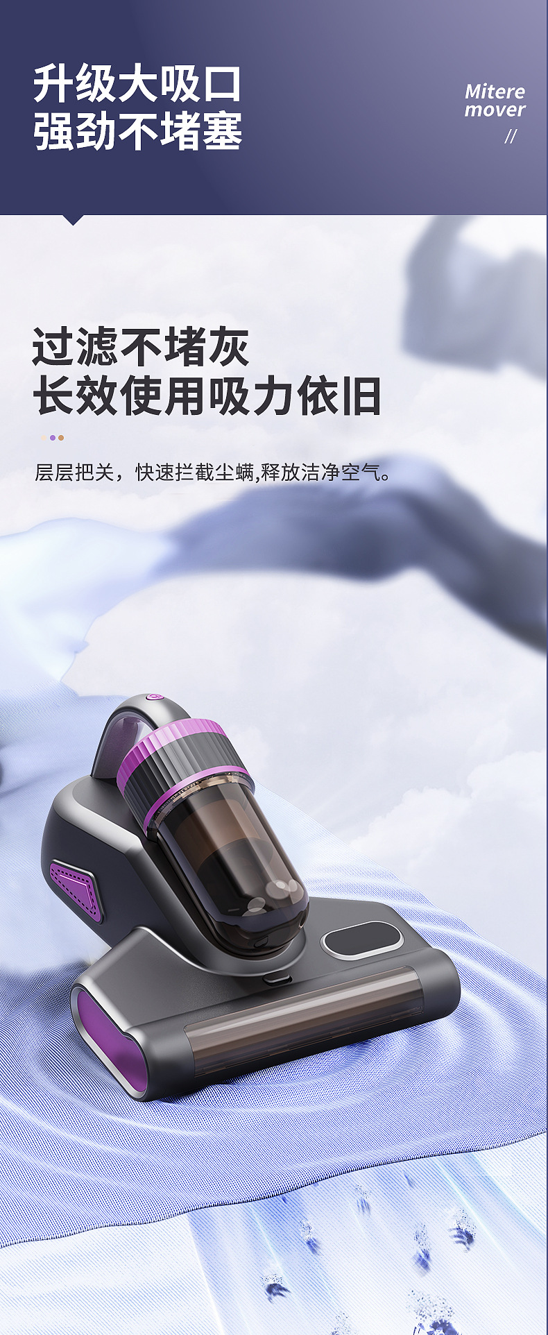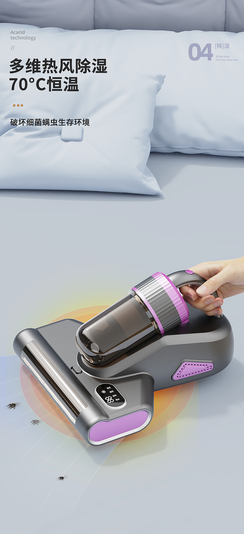 새로운 UV 가정용 무선 아카라이트 제거 악기 큰 흡입 작은 롤러 브러시 진공 청소기 살균 및 진드기 제거 인공물