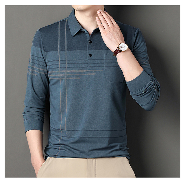국경 간 줄무늬 매일 얇은 긴팔 POLO 셔츠 남자의 봄과 여름 비즈니스 통기성 티셔츠 최고 캐주얼 대외 무역스토어 가기
