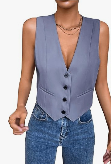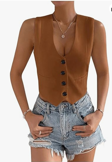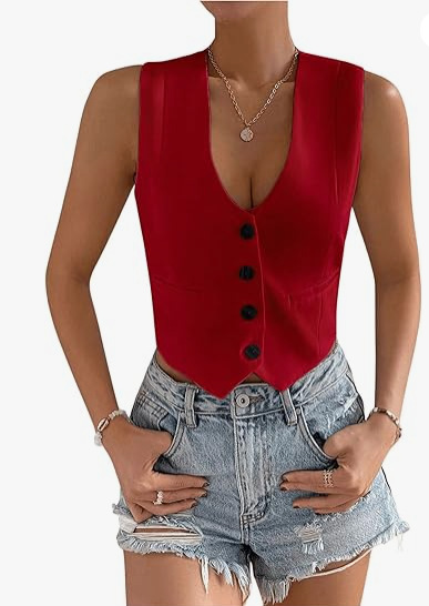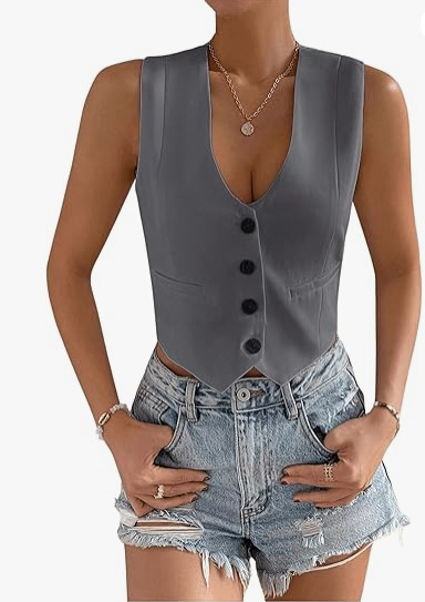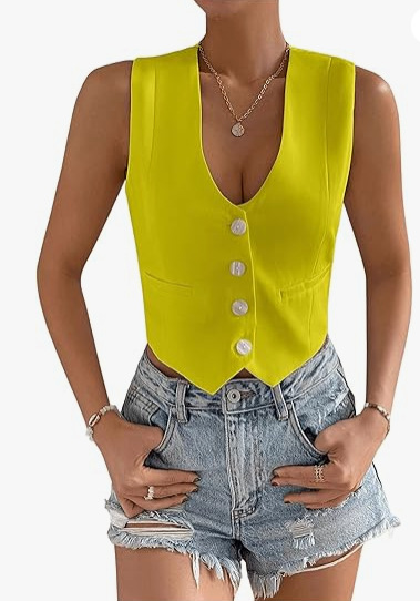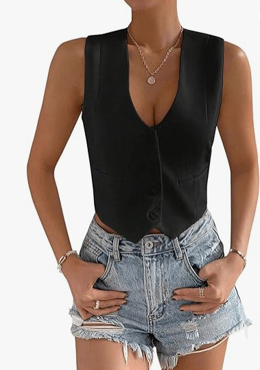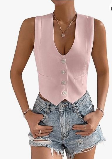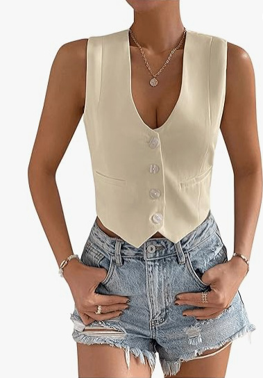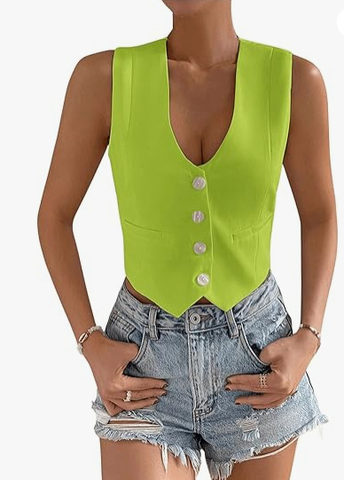 2025 새로운 슬림 핏 우아한 싱글 브레스트 민소매 쇼트 조끼 여성 국경 여성 의류 유럽과 미국스토어 가기