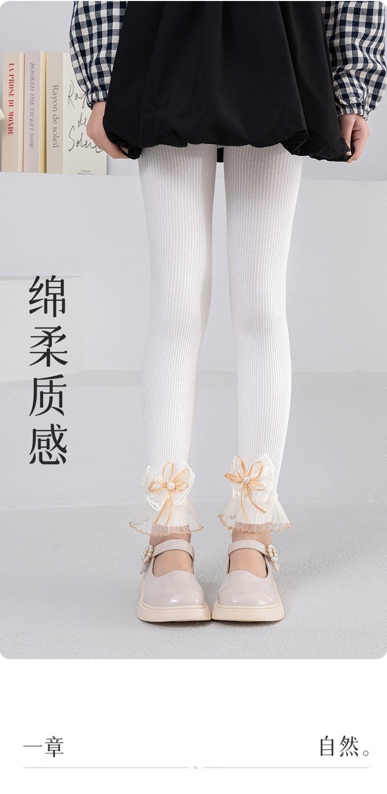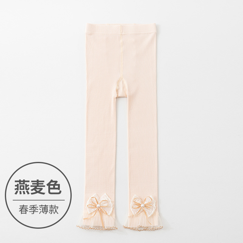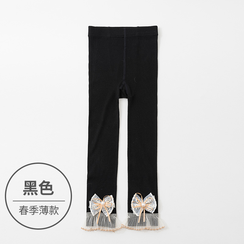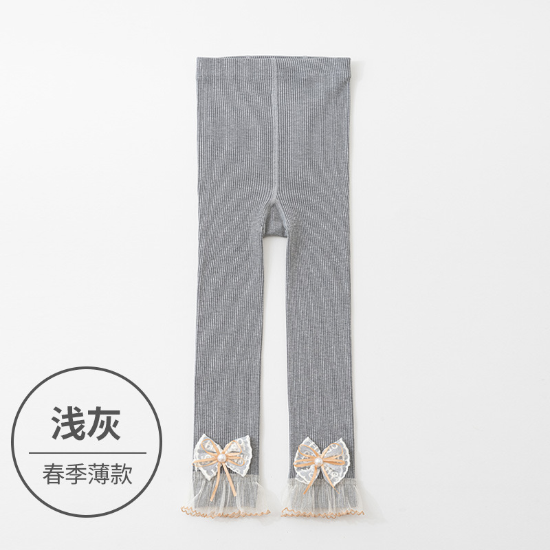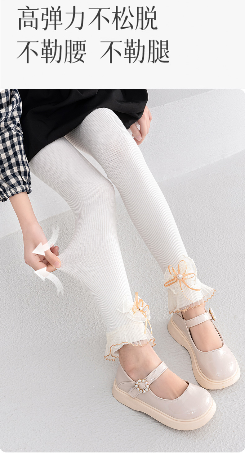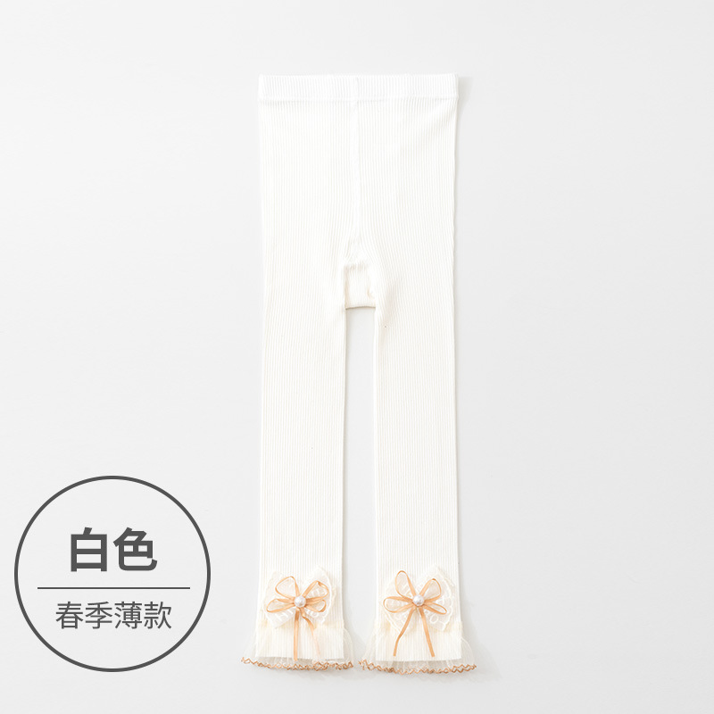 소녀 레깅스 봄과 가을 화이트 아우터 착용 어린이 9 점 팬티 스타킹 레이스 보우 베이비 레깅스