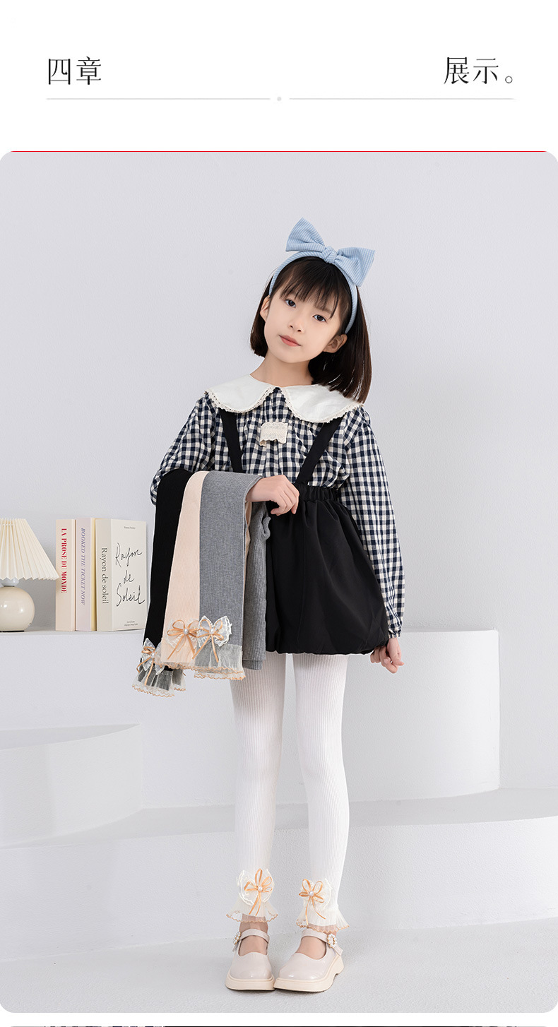 소녀 레깅스 봄과 가을 화이트 아우터 착용 어린이 9 점 팬티 스타킹 레이스 보우 베이비 레깅스스토어 가기