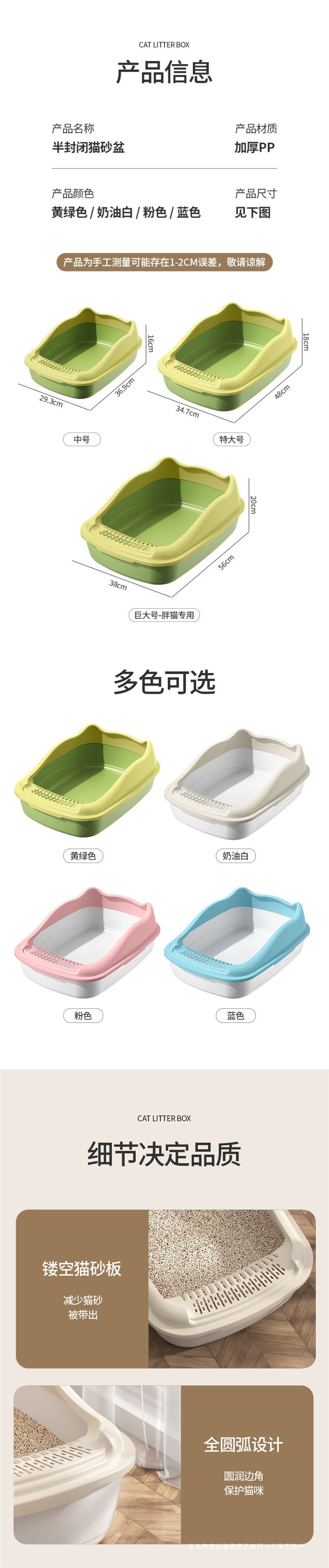 반 폐쇄 저렴한 고양이 쓰레기 분지 대형 두꺼운 안티 스플래시 고양이 쓰레기 분지 고양이 화장실 오픈 유니버설 고양이 안전 구매스토어 가기