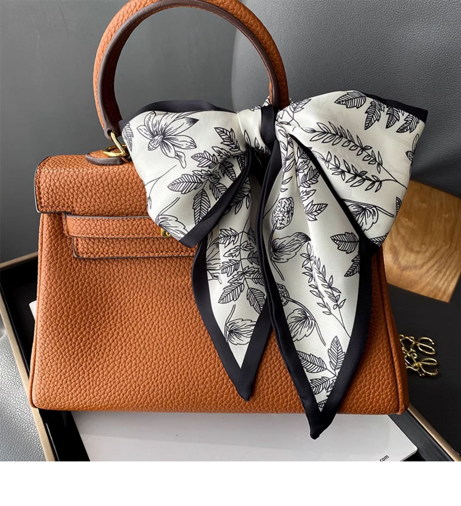 • 【하운드투스 시리즈●브라운 스타일] 실크 스카프 1개
