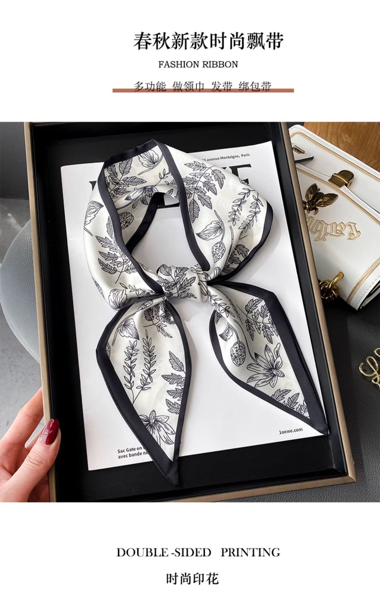 • 【부드러운 실크 스카프●흑백 라인] 1