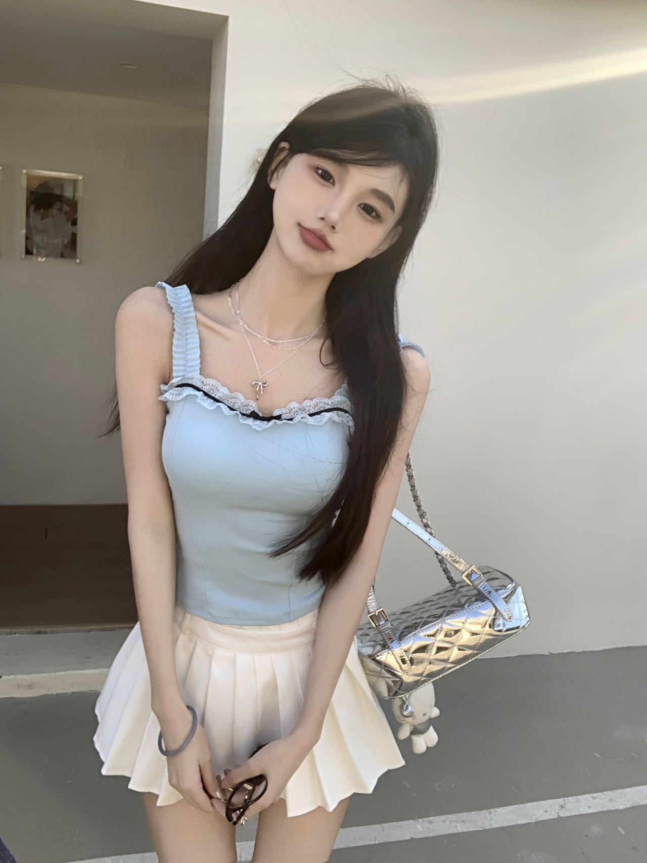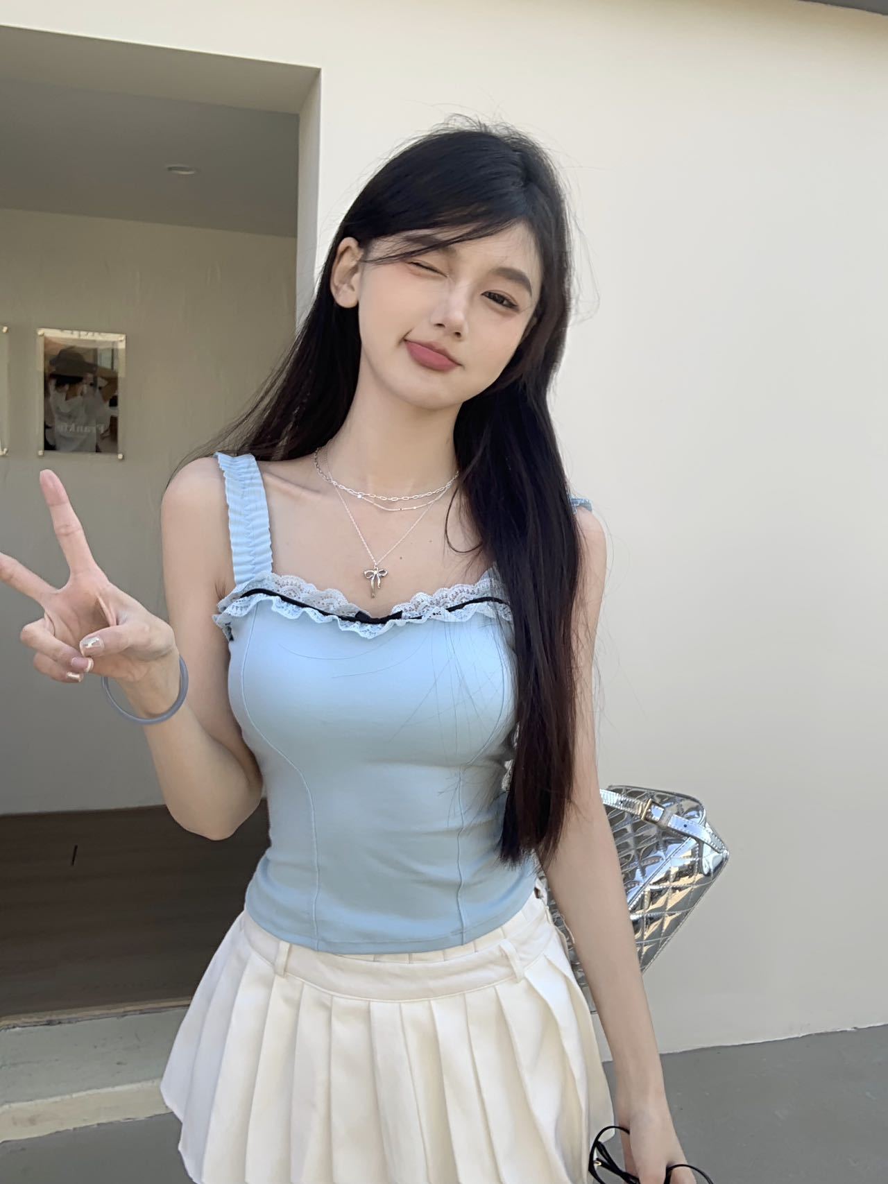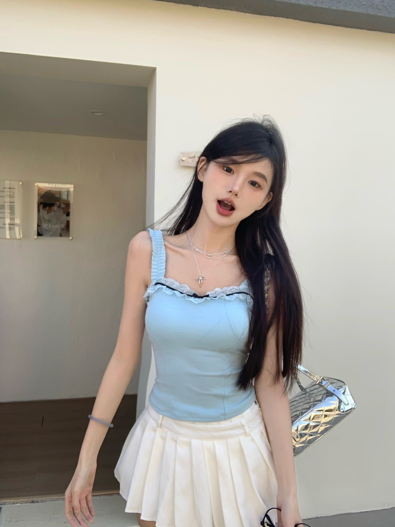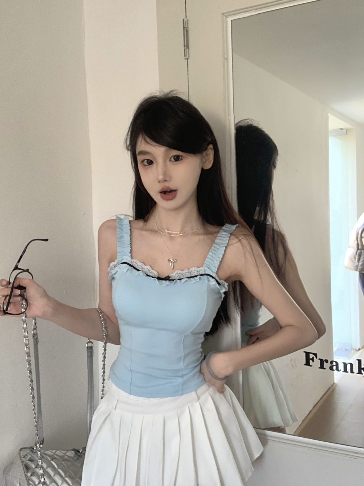 1846 # # 여름 신선한 디자인 주름 레이스 디자인 올 매치 슬림 핏 섹시한 민소매 슬링 여성스토어 가기
