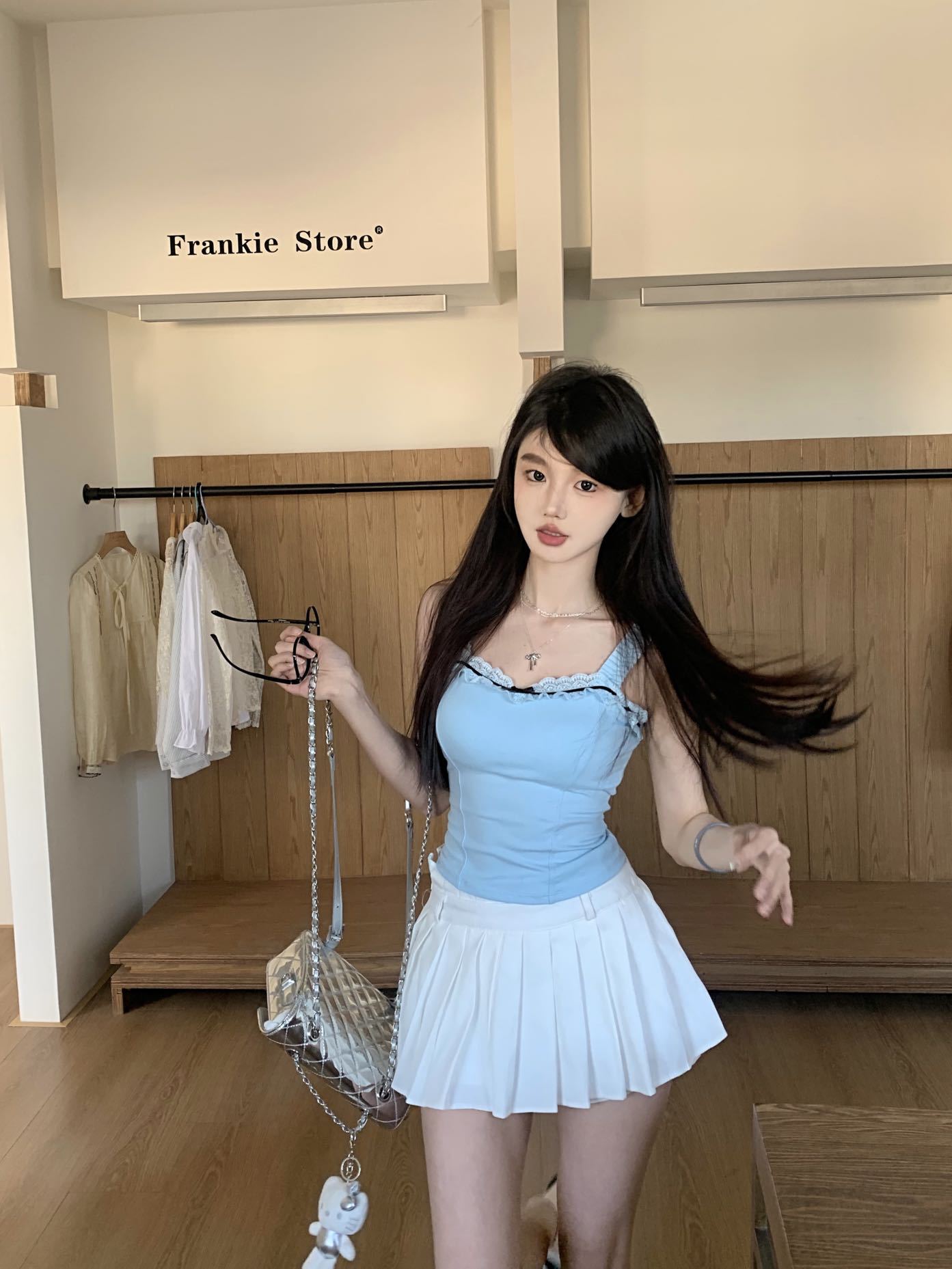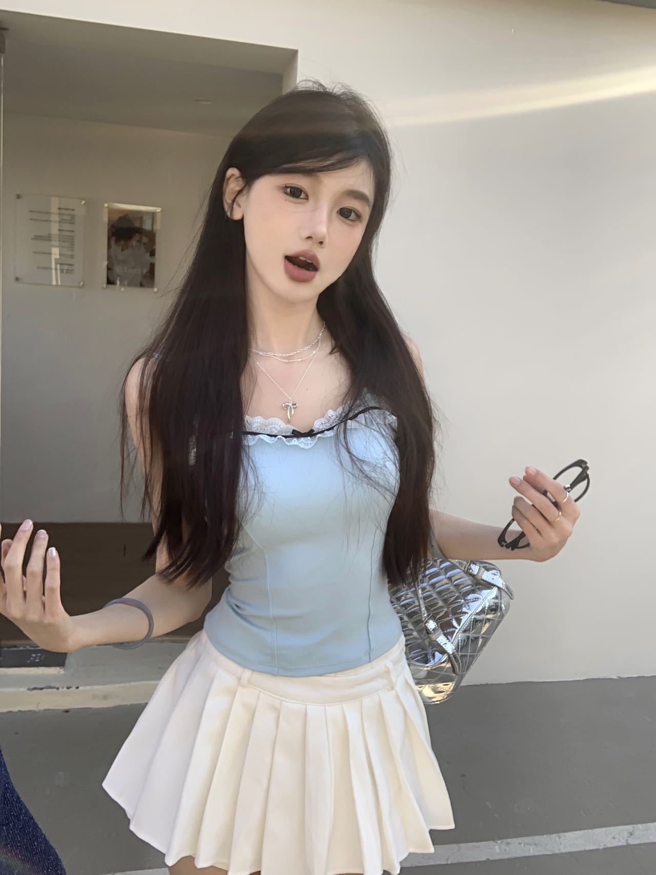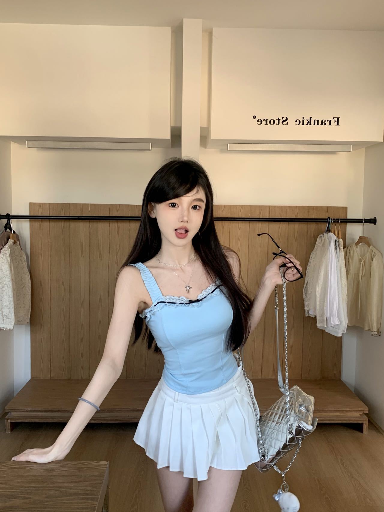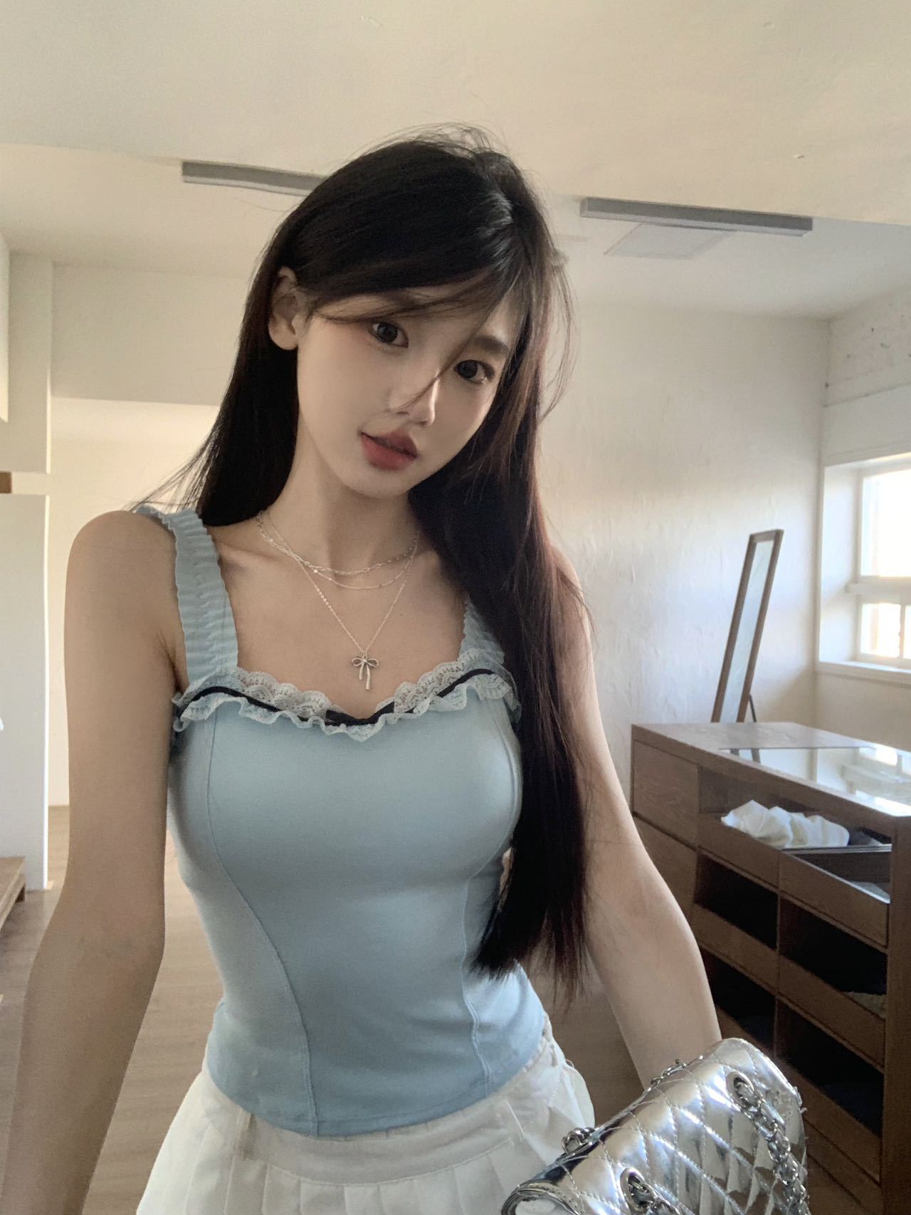 1846 # # 여름 신선한 디자인 주름 레이스 디자인 올 매치 슬림 핏 섹시한 민소매 슬링 여성스토어 가기