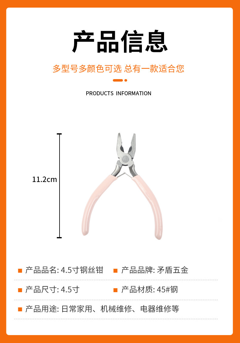 제조업체는 4.5 인치 와이어 펜치를 핑크 여러 기능을 갖춘 4.5 인치 핸들 미니 펜치를 생산합니다.