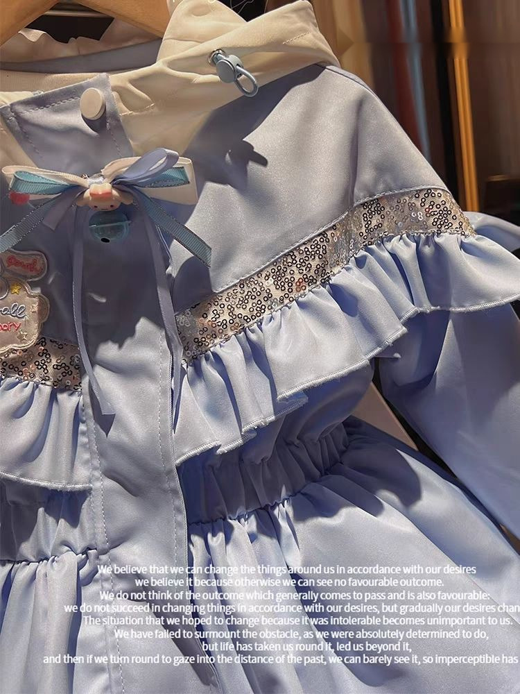 소녀의 봄과 가을 유구이 개 블루 코트 재킷 원피스 후드 외국식 어린이 자켓 베이비 재킷