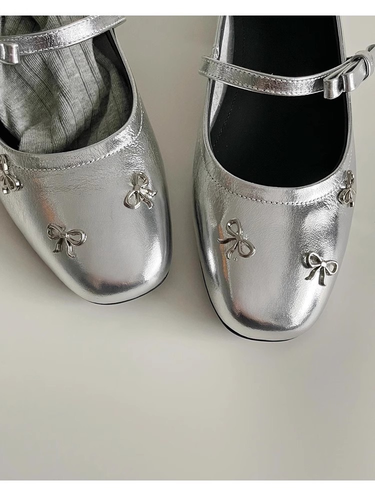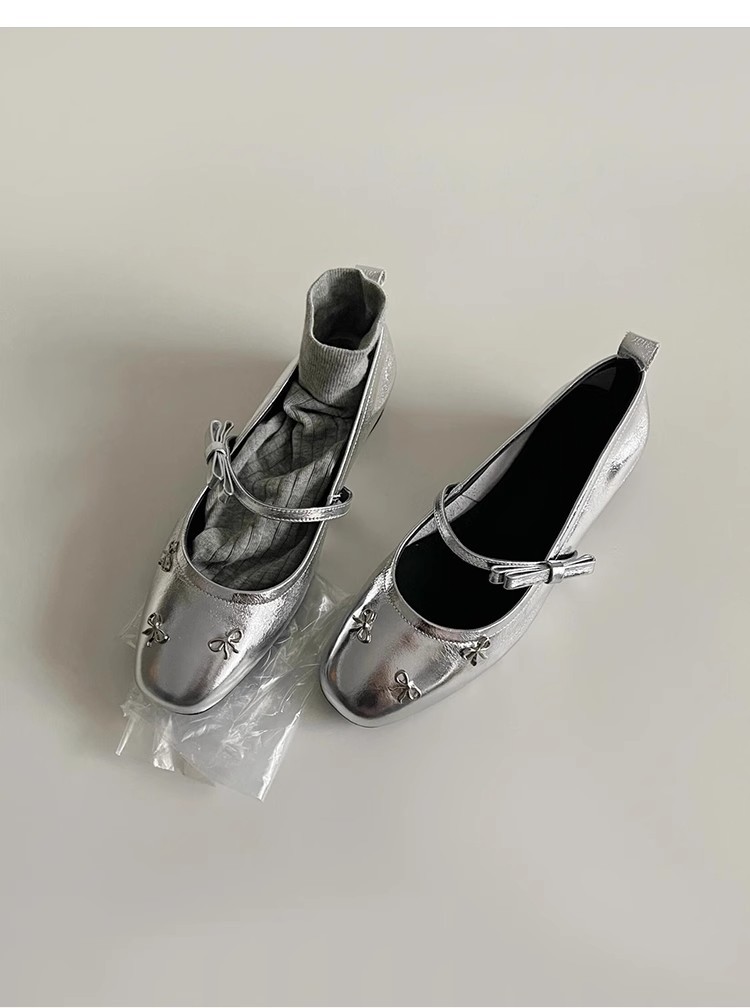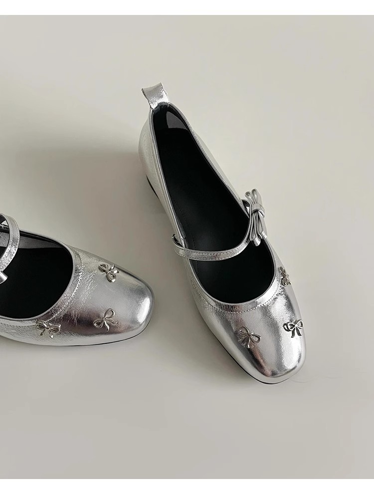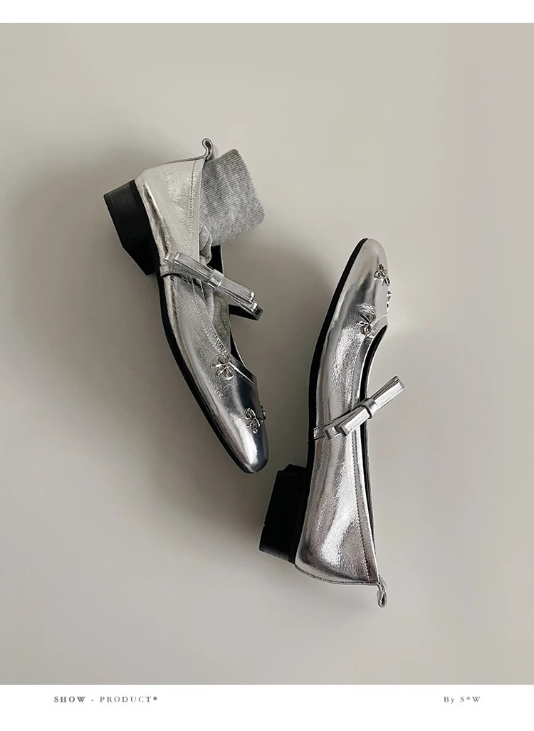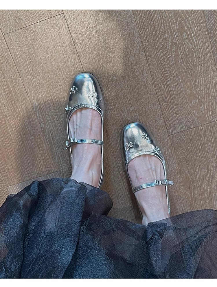 양가죽 버전 ~ 실버 평면 싱글 레이어 신발 여성의 프랑스 얕은 입 메리 제인 신발 버클 활 조커 작은 가죽 신발
