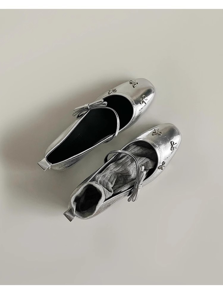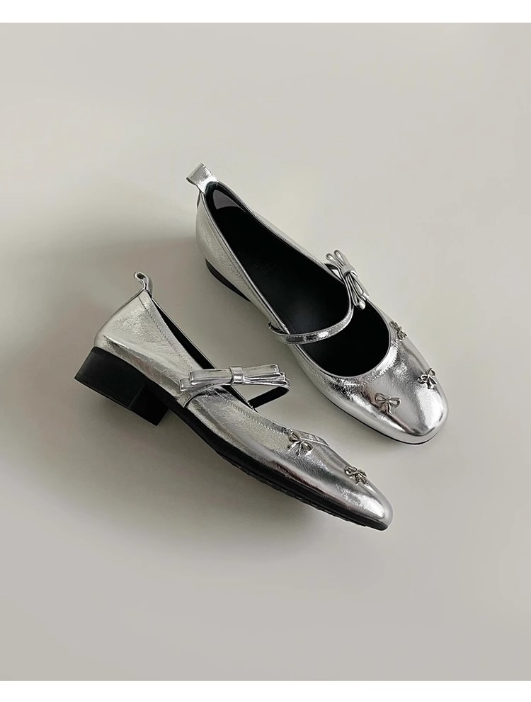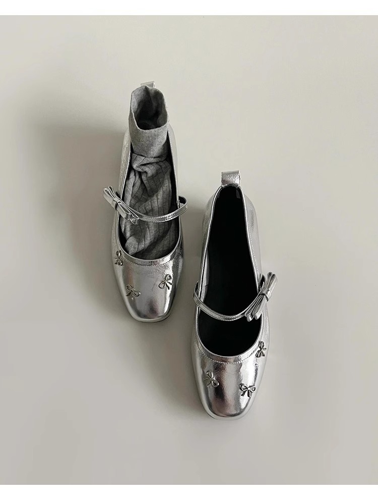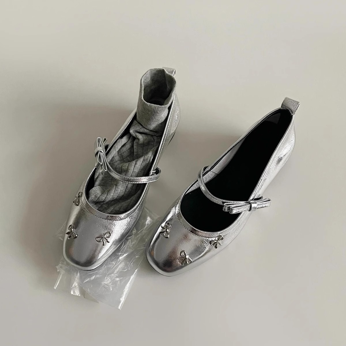 양가죽 버전 ~ 실버 평면 싱글 레이어 신발 여성의 프랑스 얕은 입 메리 제인 신발 버클 활 조커 작은 가죽 신발
