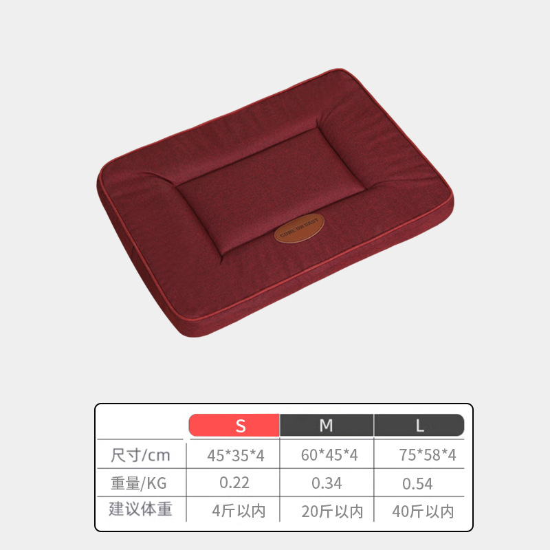 • 린넨 애완동물 수면 매트 긁힘 방지 버전 [버건디] 75*58*4CM