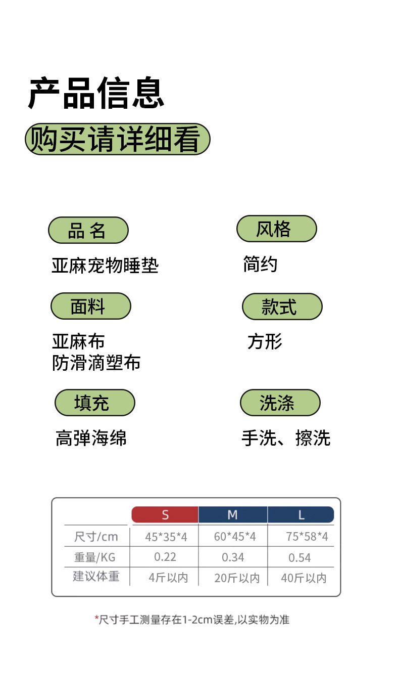 • 린넨 애완동물 수면 매트 긁힘 방지 버전 [밝은 녹색] 45*35*4CM