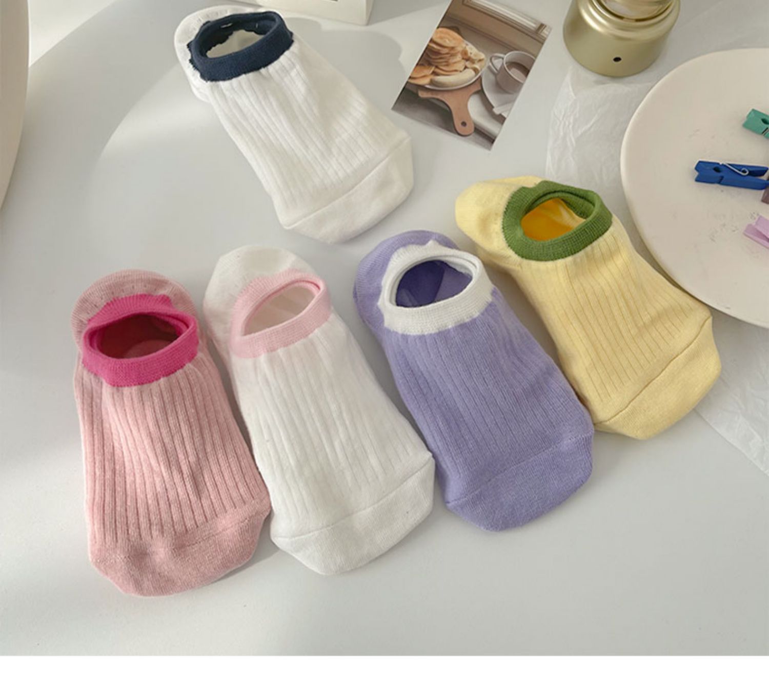 隐形袜子女船袜夏季薄款糖果色抽条棉浅口短袜罗口拼色马卡龙船袜