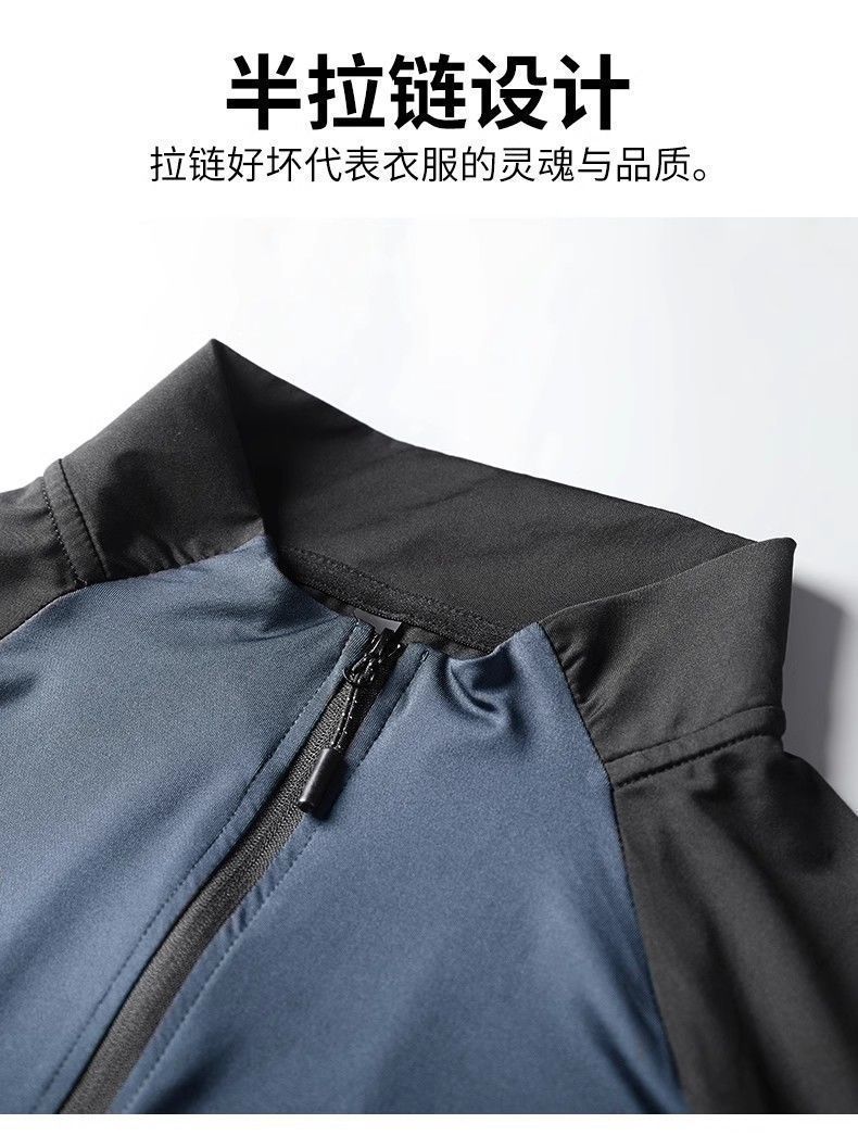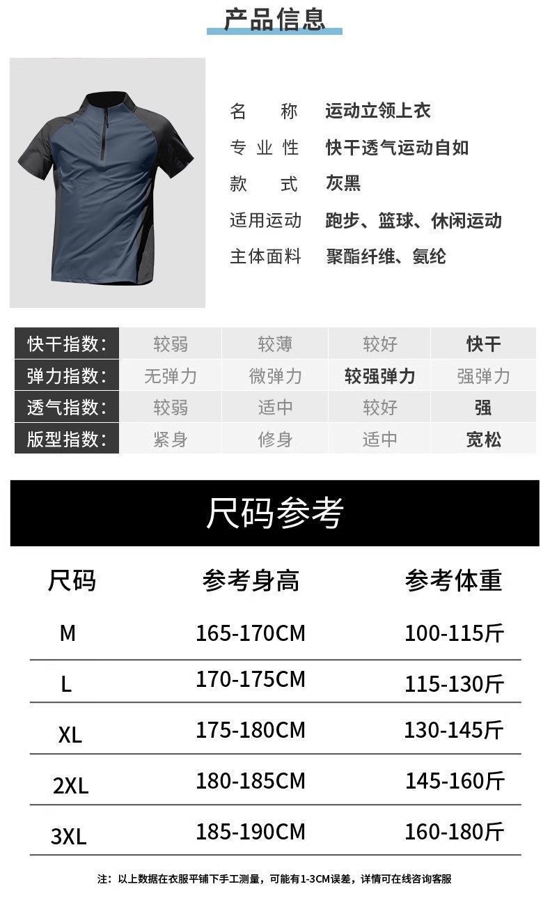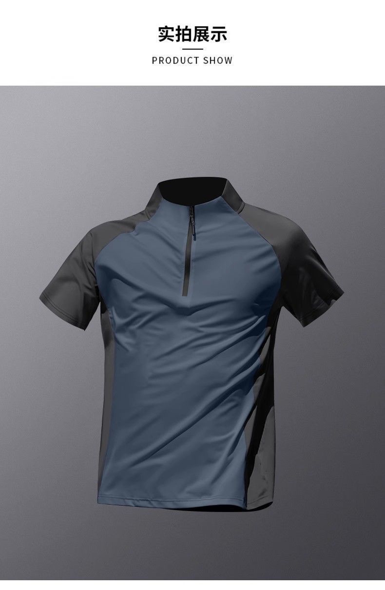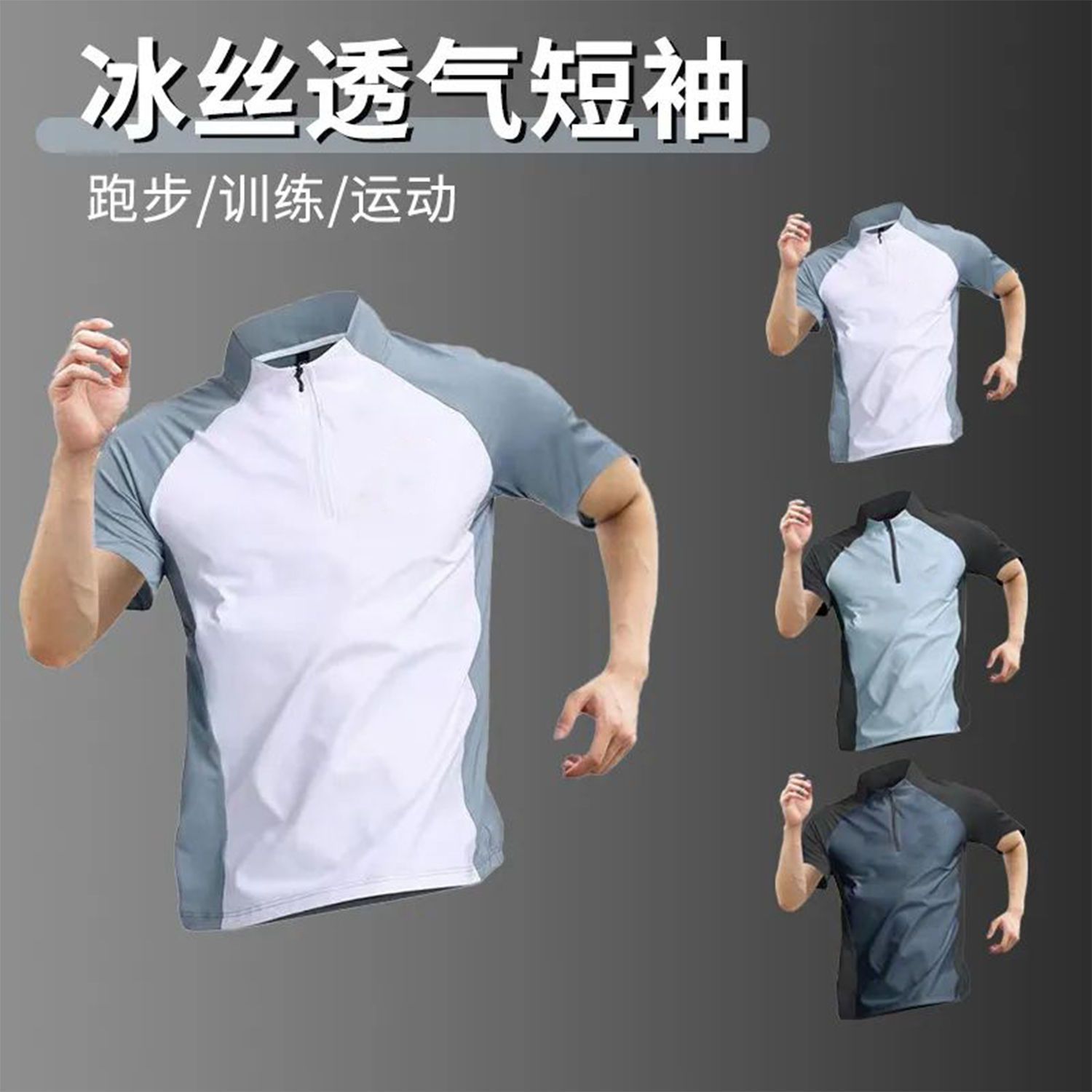수직 칼라 및 반 지퍼 짧은 소매 훈련이있는 포괄적 인 훈련 옷 땀 흡수성 빠른 건조 옷 스티칭 대비 컬러 스포츠 달리기 피트니스 옷스토어 가기