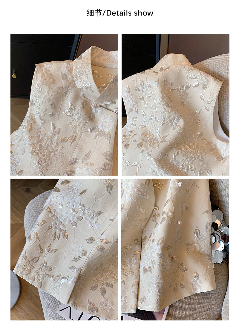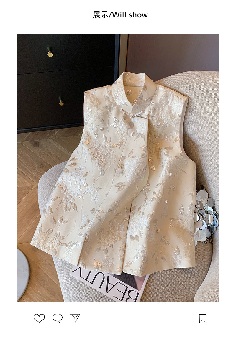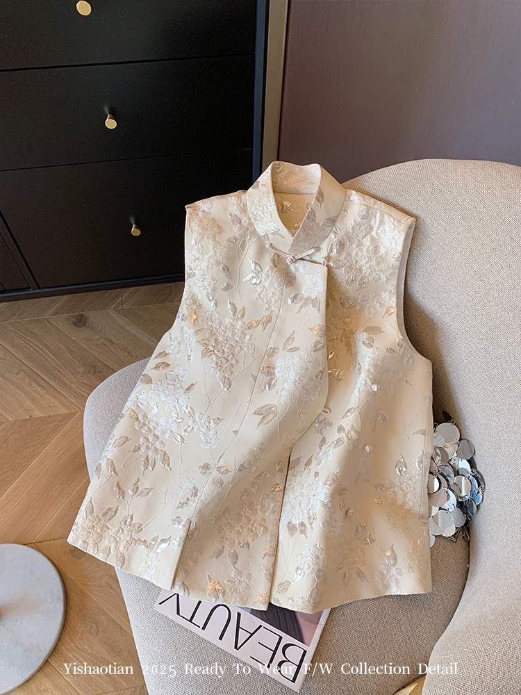 새로운 중국 스타일 칼라 금박 자카드 조끼 여성의 2025 봄 새로운 우아한 부드러운 개선 된 국가 스타일 민소매 조끼