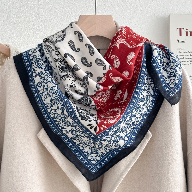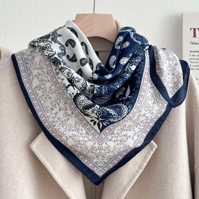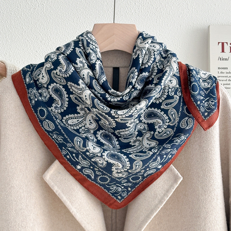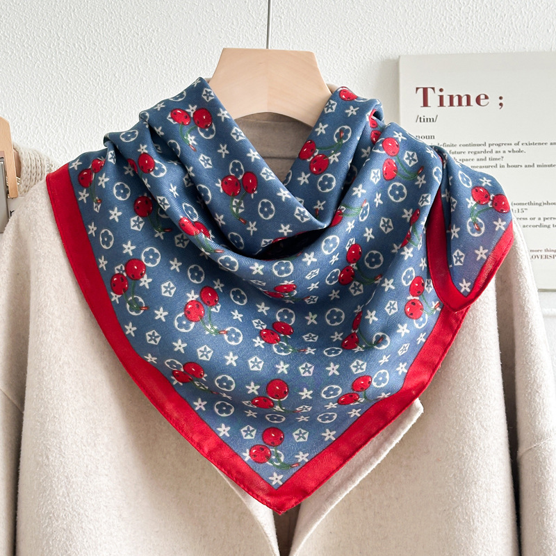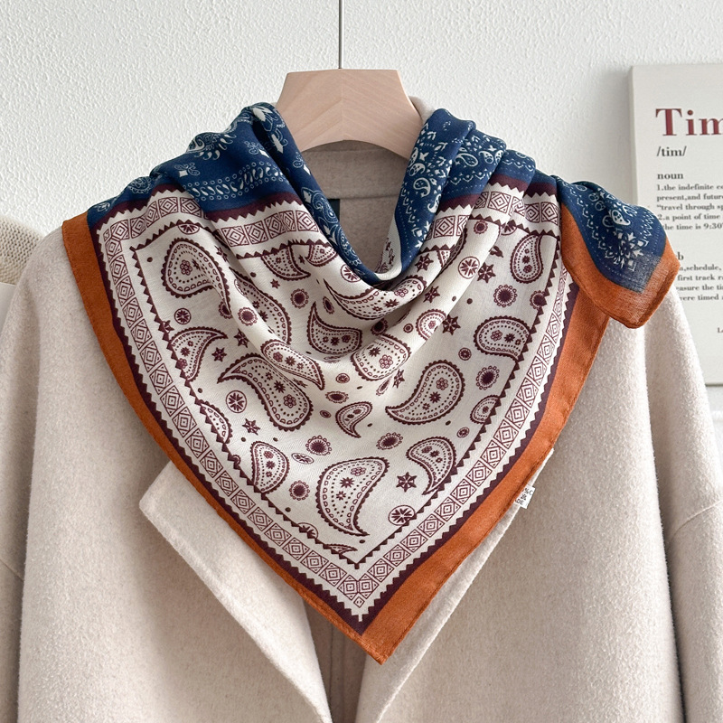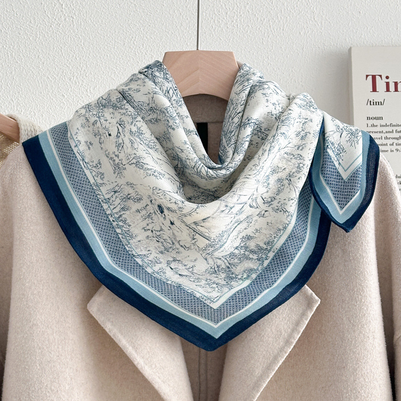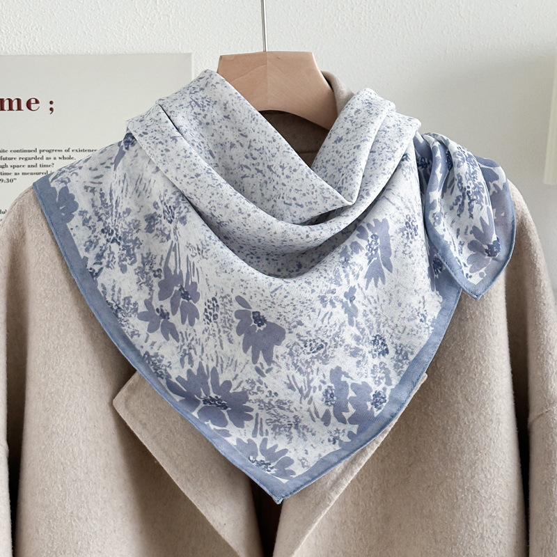 파란 편지 70 작은 광장 스카프 실크 스카프 여성 인터넷 인기있는 봄과 가을 얇은 작은 스카프 면과 리넨 스카프 어머니의 선물 목도리
