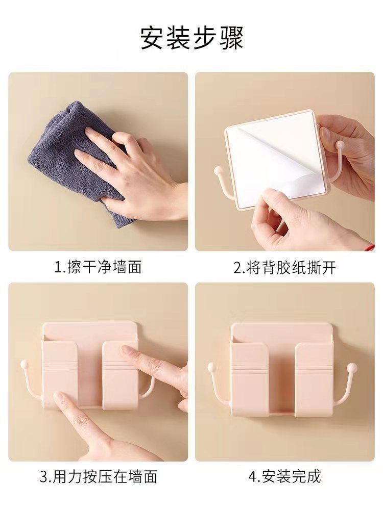 침대 옆 랙 벽에 장착 된 저장 상자 휴대 전화 브래킷 접착 휴대 전화 충전 브래킷 원격 제어 저장 상자