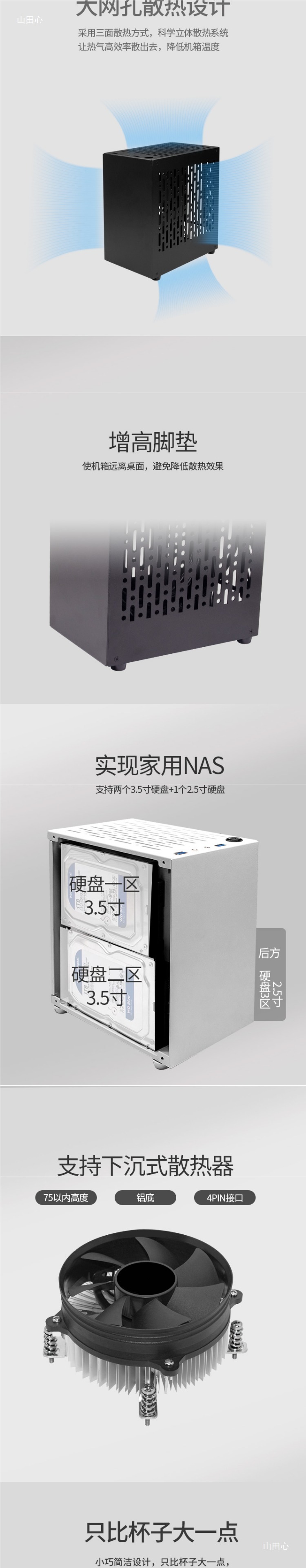 NAS 섀시 ITX 마더보드 3베이 컴팩트 미니 화이트 컴퓨터 데스크탑 Qiaomei 섀시 마카롱 프로스토어 가기