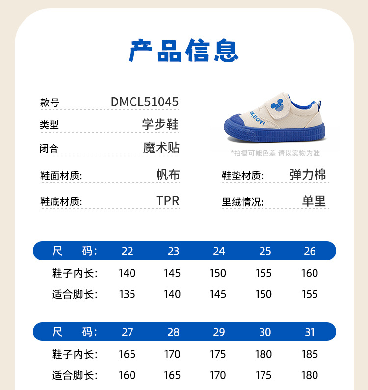 디즈니 베이비 소프트 단독 캔버스 신발 2025 봄 새로운 어린이 3-6 세 유치원 실내 미끄럼 방지 신발