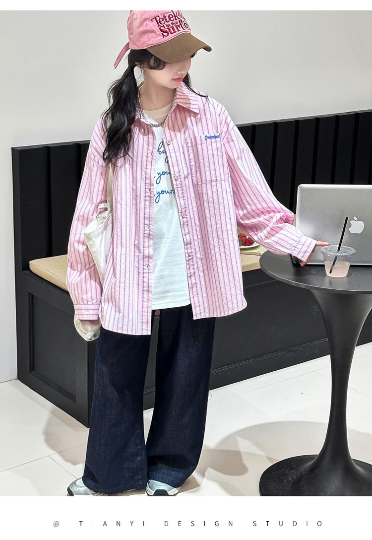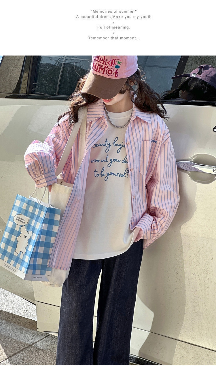 여아 스트라이프 셔츠 세트 2026년 대학 스타일 봄 가을 신상 패셔너블 캐주얼 긴팔 셔츠 중대형 아동용 자켓스토어 가기