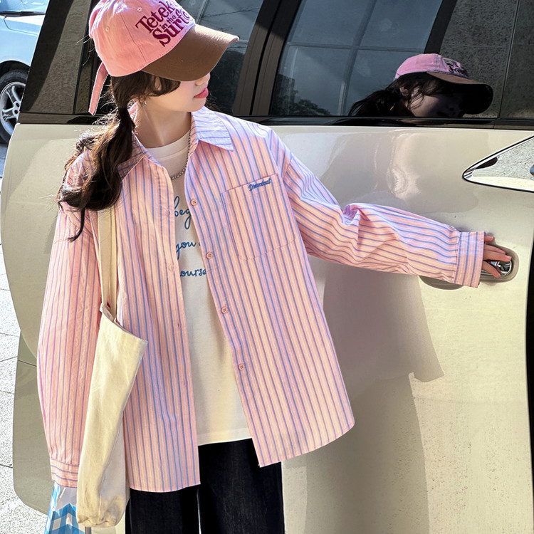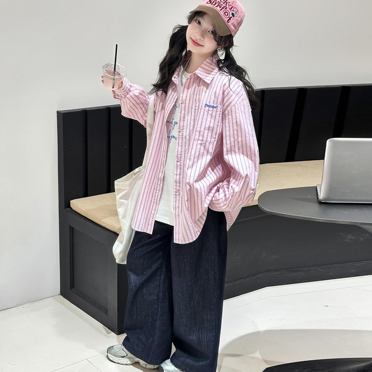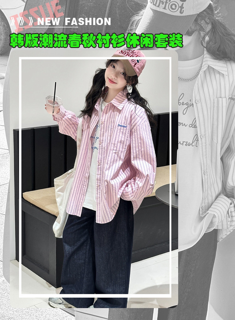 여아 스트라이프 셔츠 세트 2026년 대학 스타일 봄 가을 신상 패셔너블 캐주얼 긴팔 셔츠 중대형 아동용 자켓