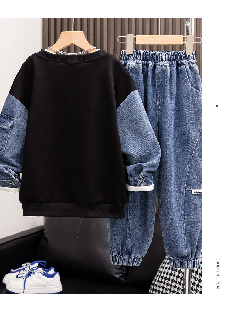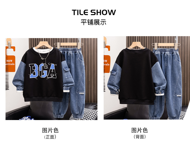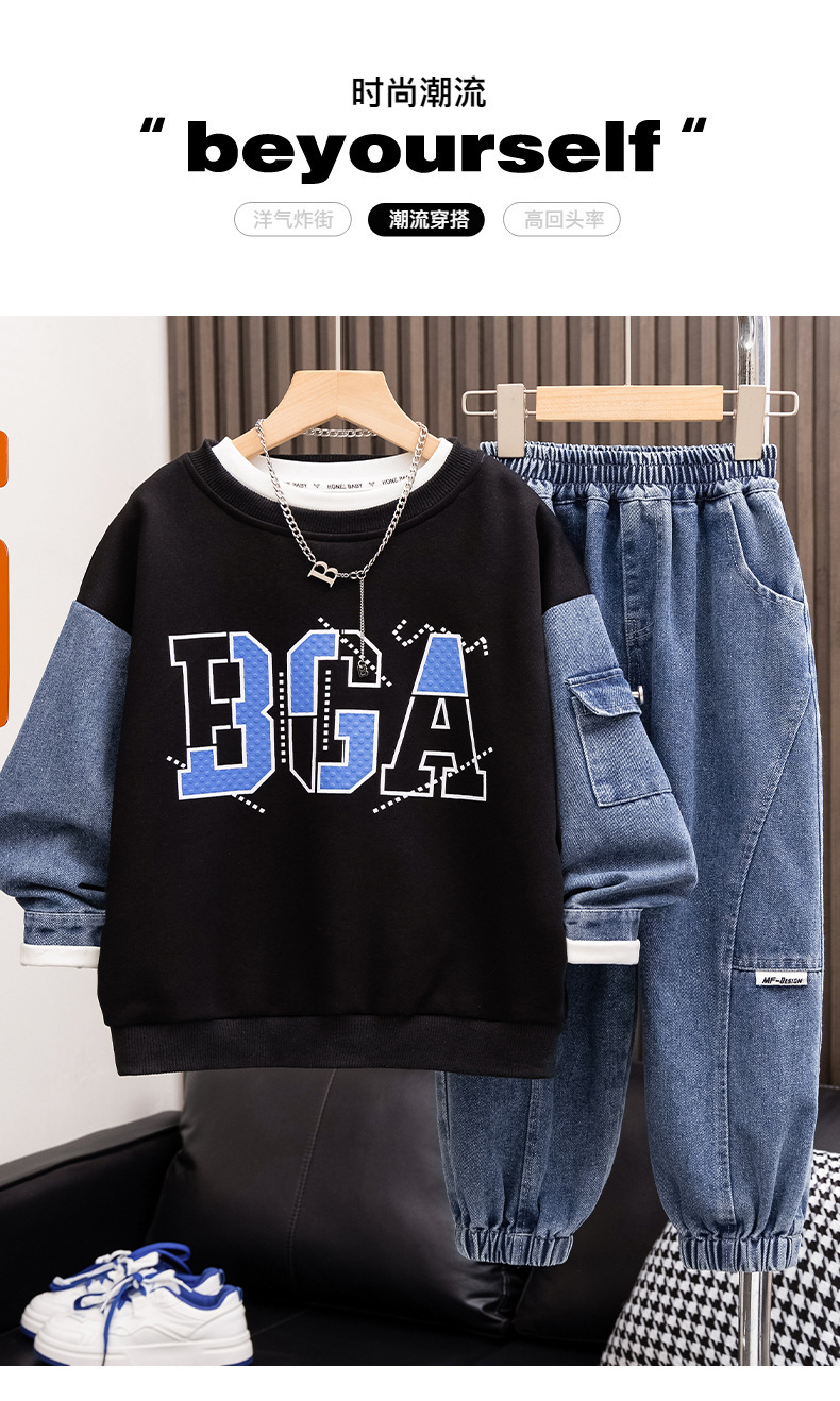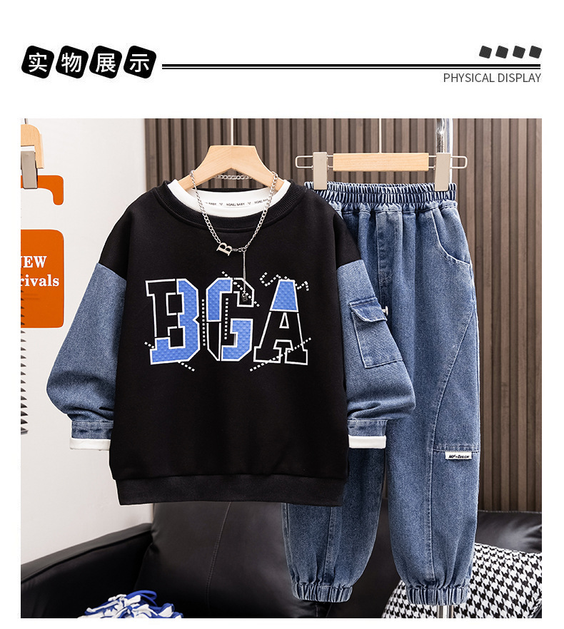 남아 봄 스포츠 스웨트셔츠 세트 2026 신상 중대형 아동 봄 데님 남아 멋진 투피스 세트 봄스토어 가기
