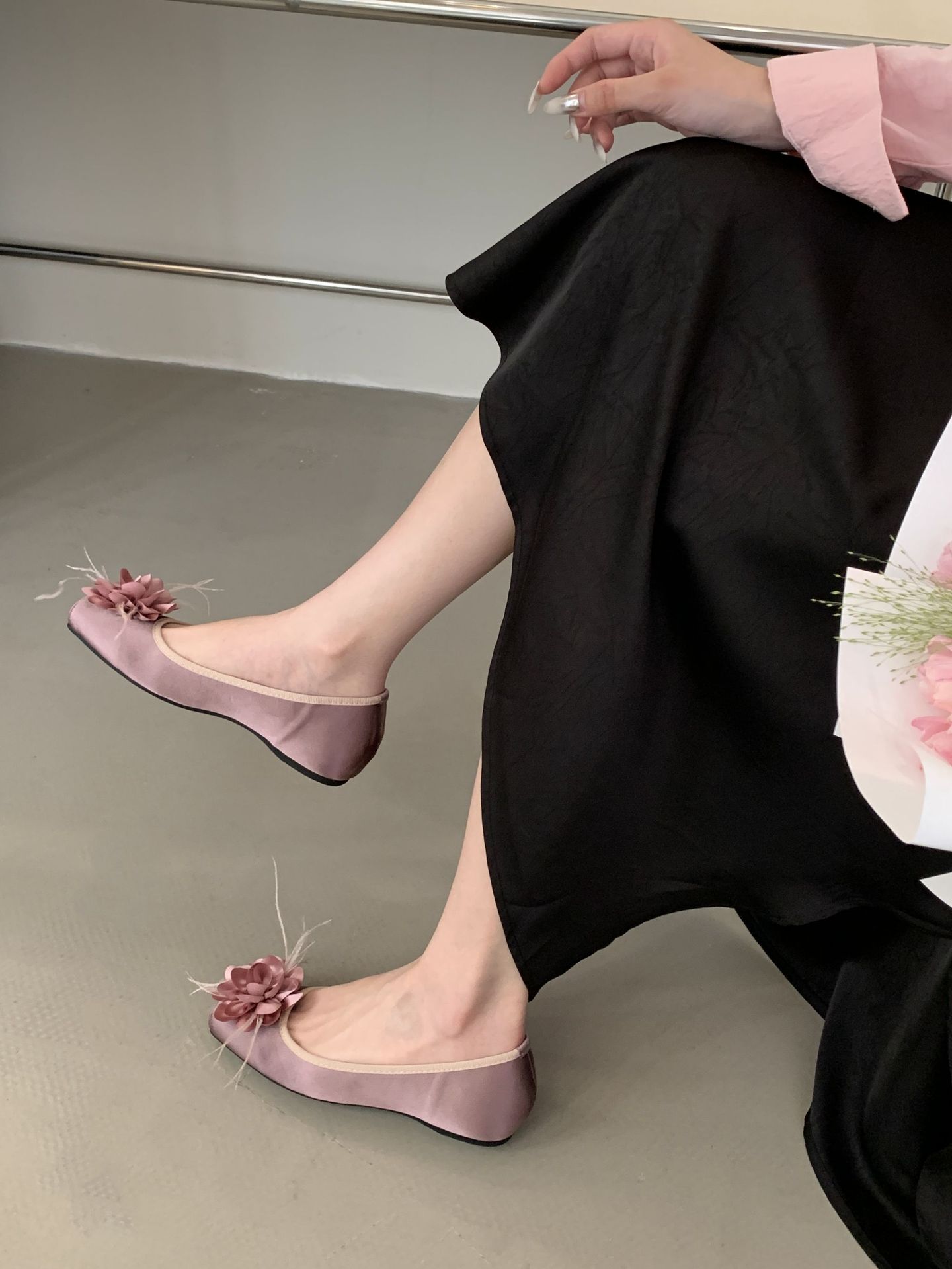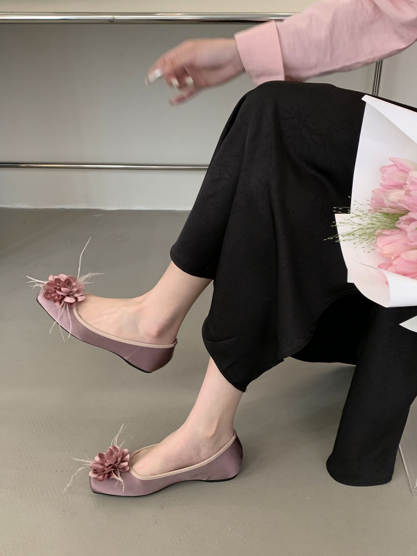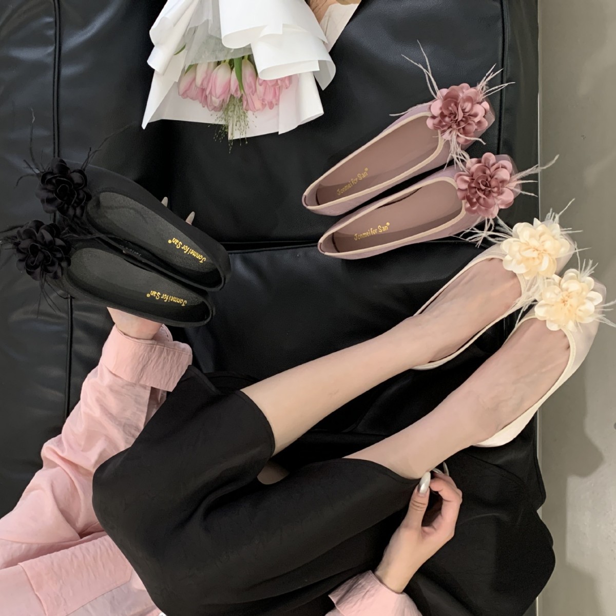 프랑스 활 얕은 입 색상 블록 신발 여성용 샤넬 스타일 콩 신발 부드러운 요정 발레 신발