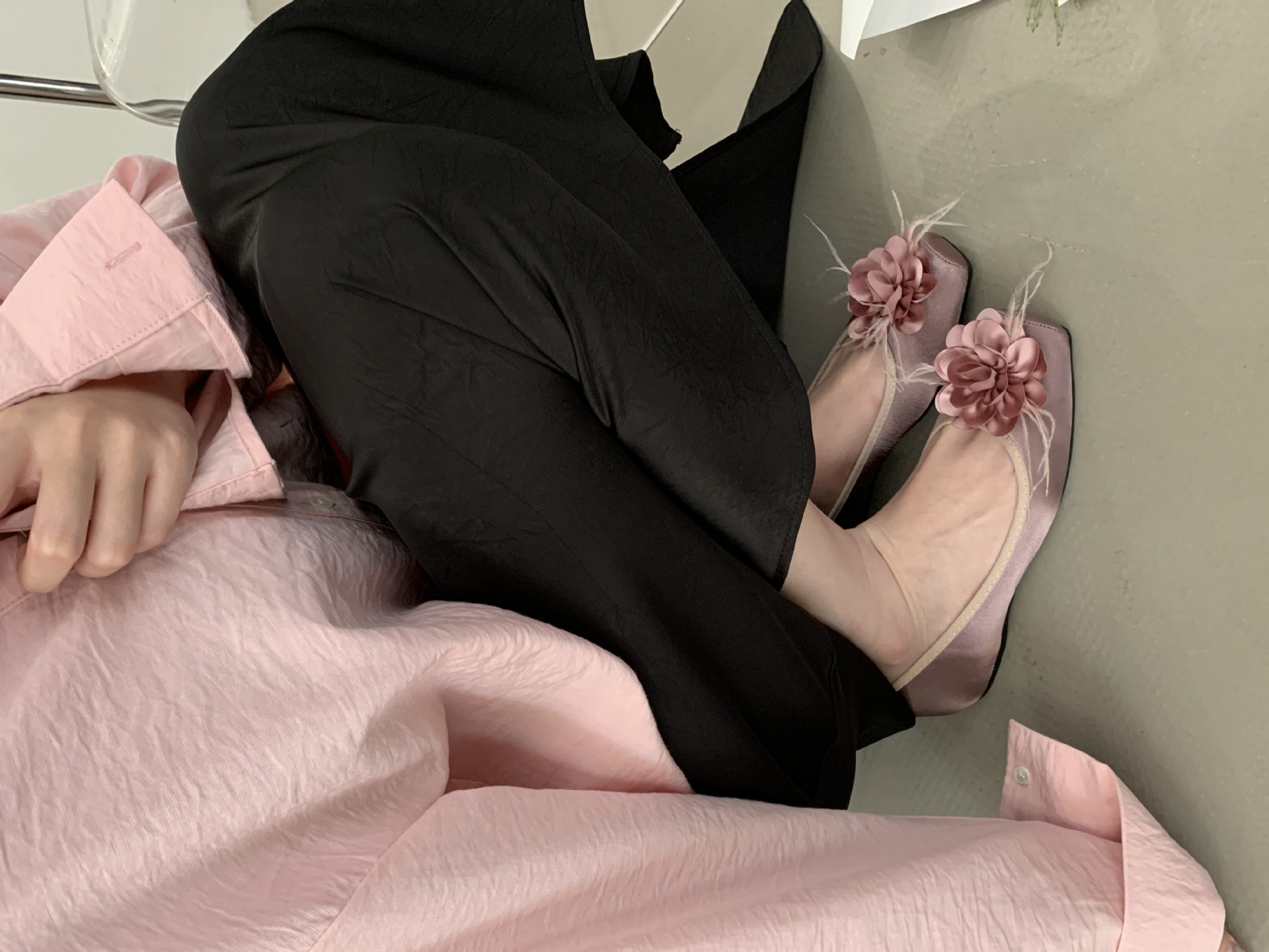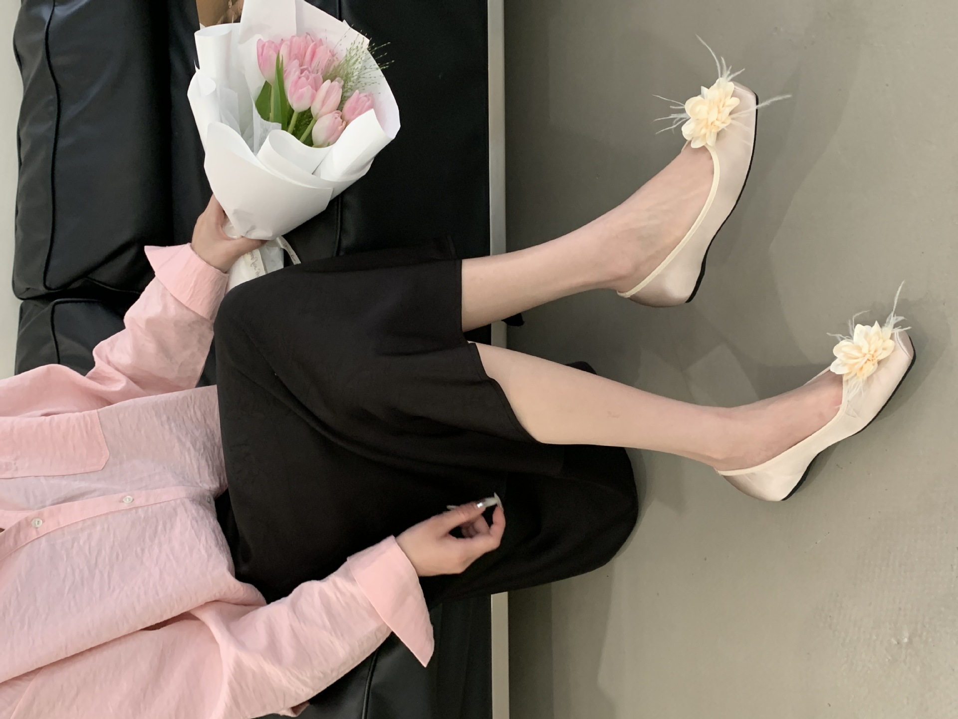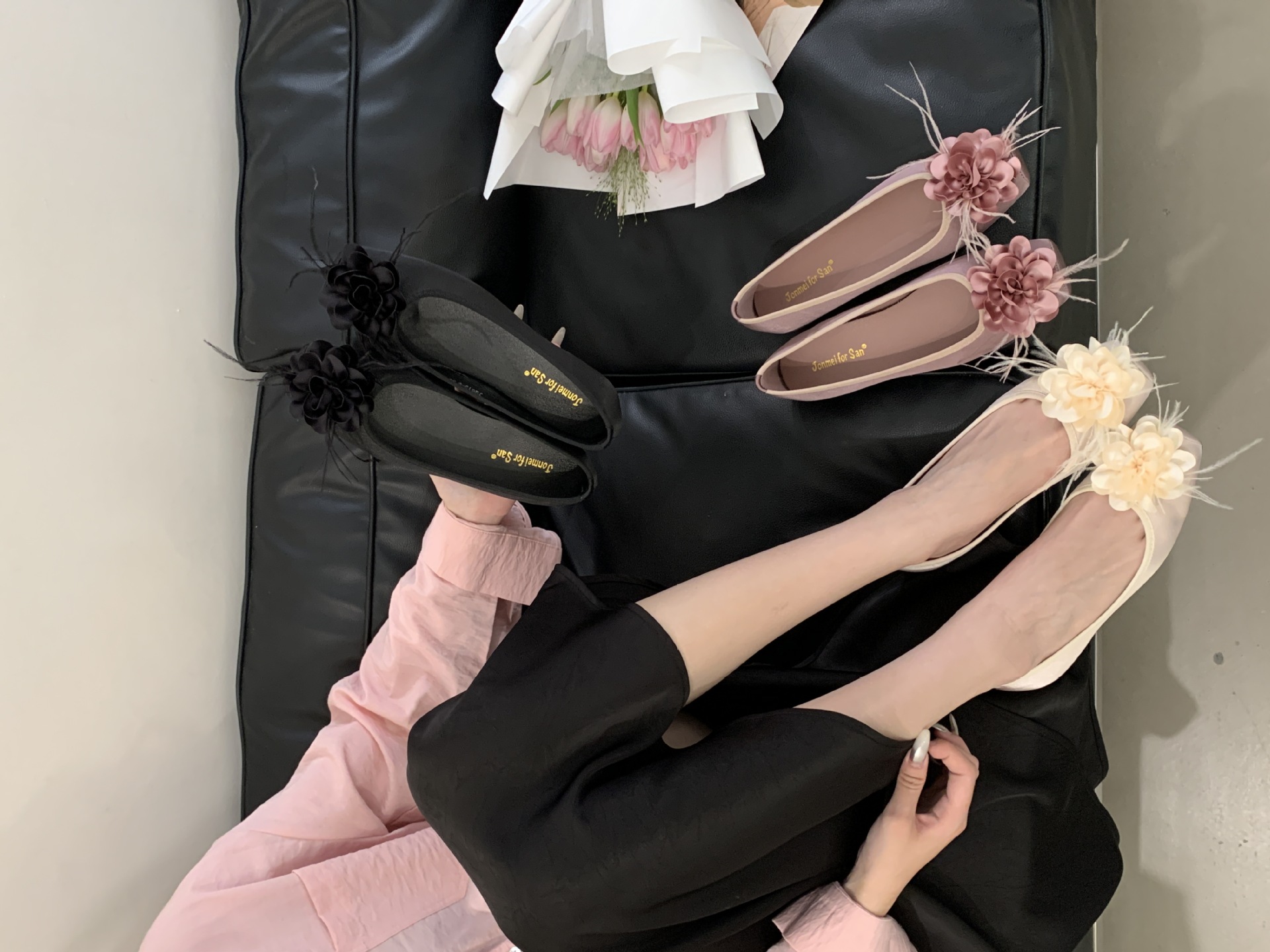 프랑스 활 얕은 입 색상 블록 신발 여성용 샤넬 스타일 콩 신발 부드러운 요정 발레 신발