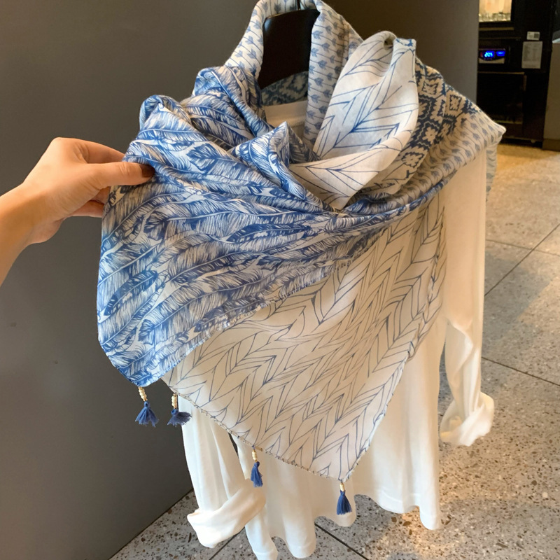 일본 스타일 신선한 스타일 예술적 민족 스타일 스카프 여성 올 매치 실크 스카프 얇은 면 및 리넨 스카프 봄과 가을 여름 선 스크린 목도리