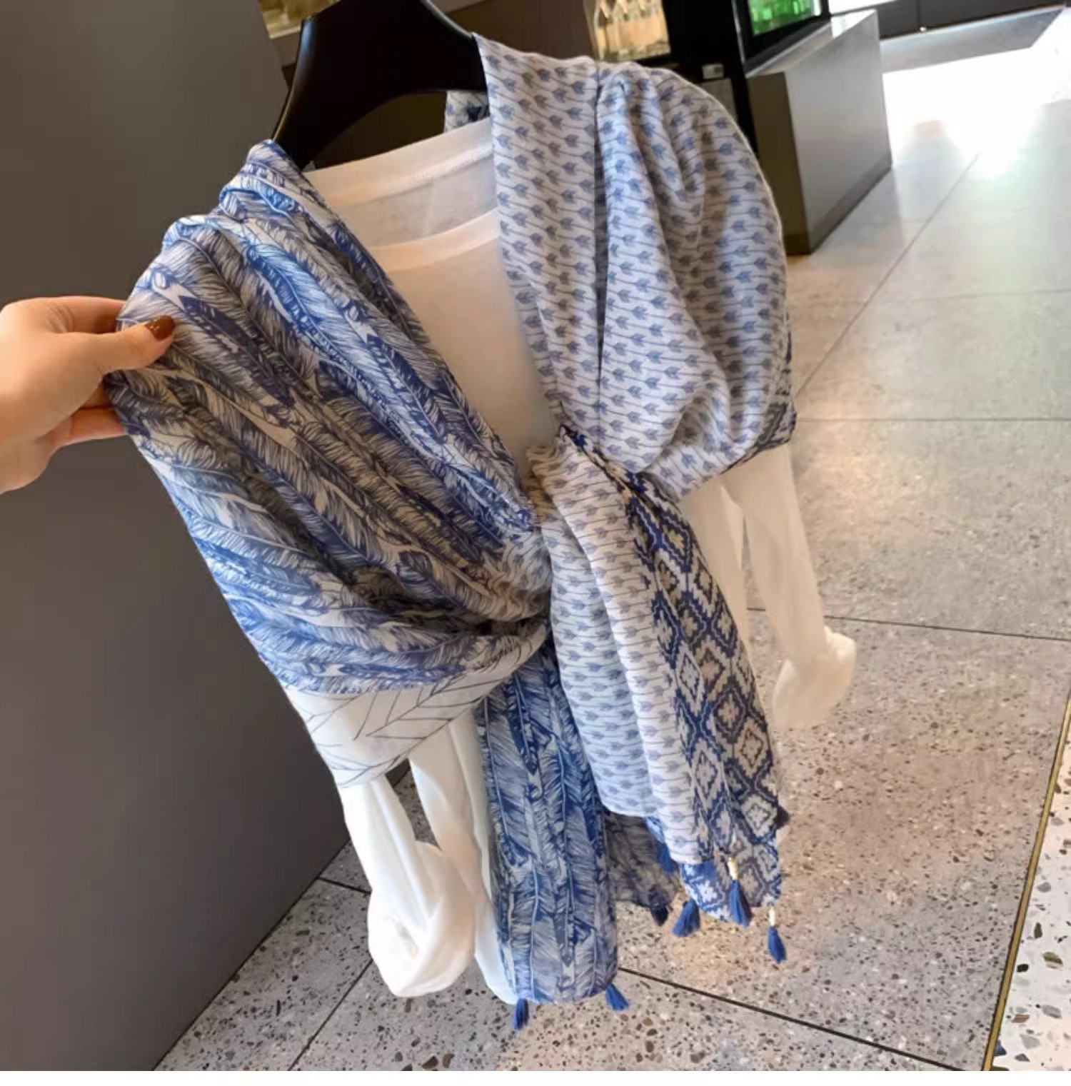 일본 스타일 신선한 스타일 예술적 민족 스타일 스카프 여성 올 매치 실크 스카프 얇은 면 및 리넨 스카프 봄과 가을 여름 선 스크린 목도리스토어 가기