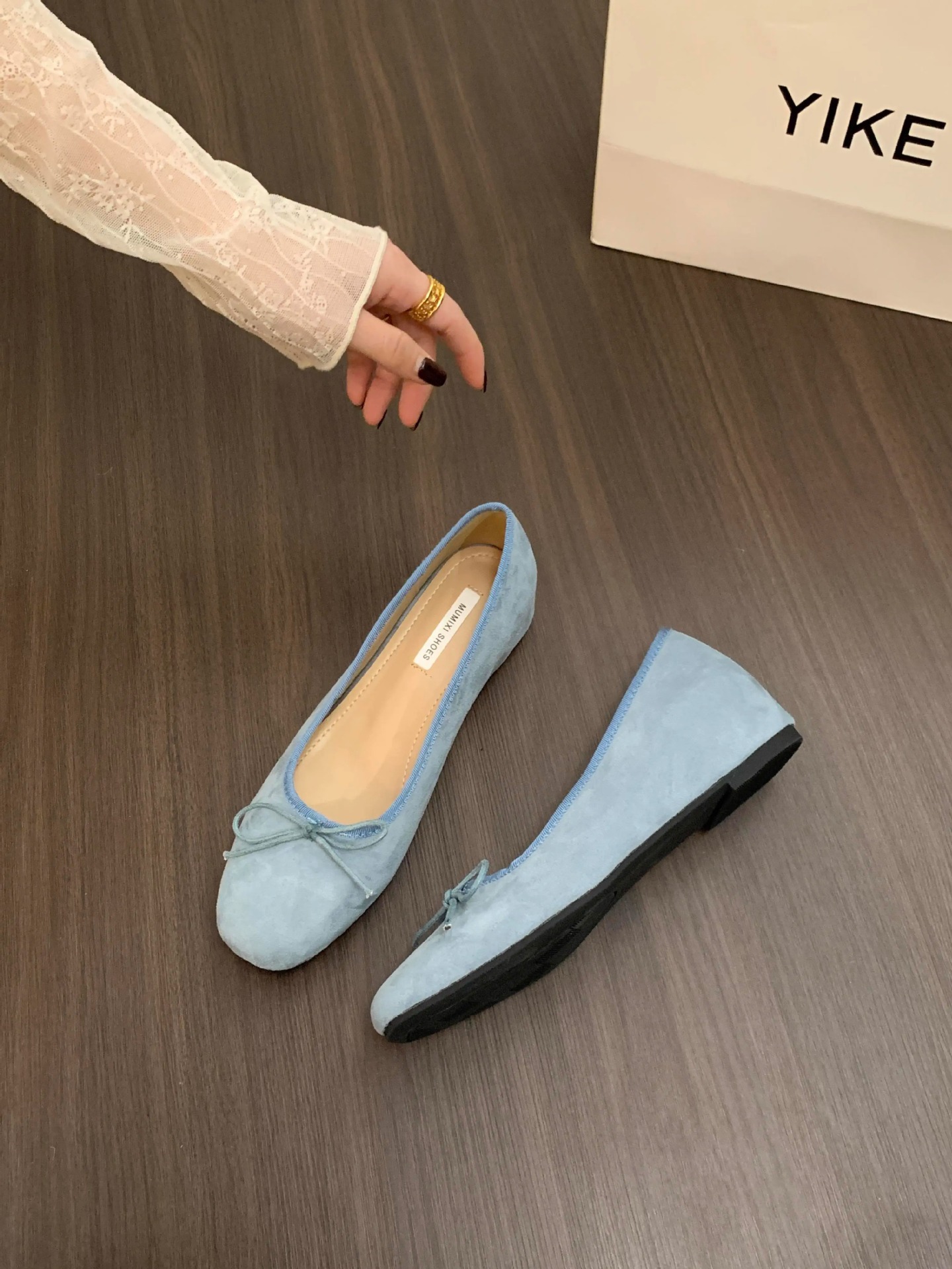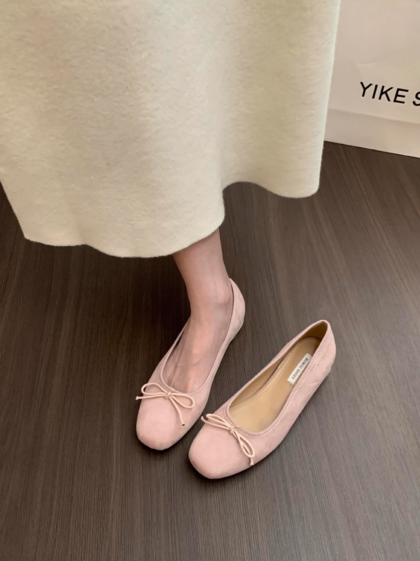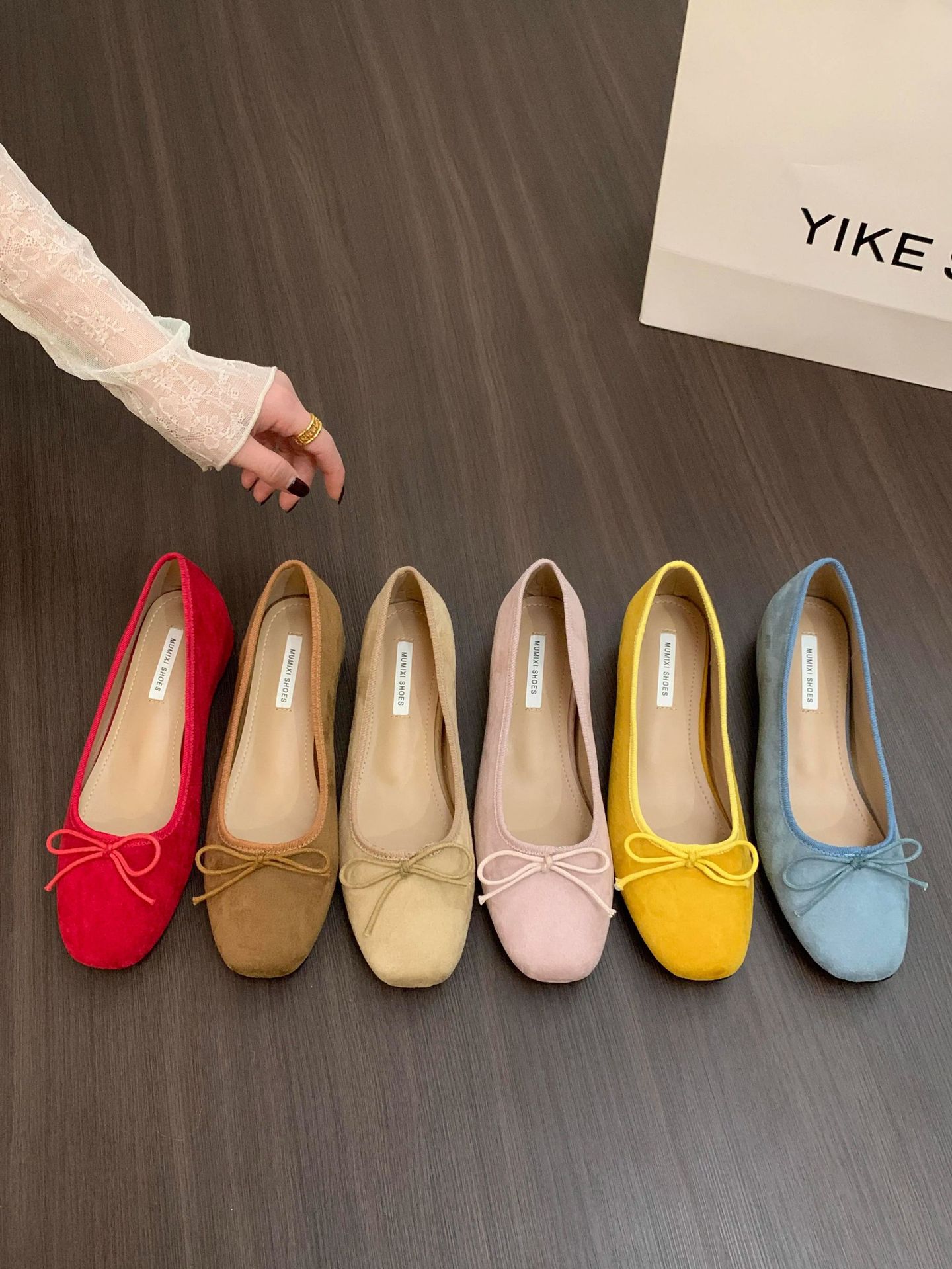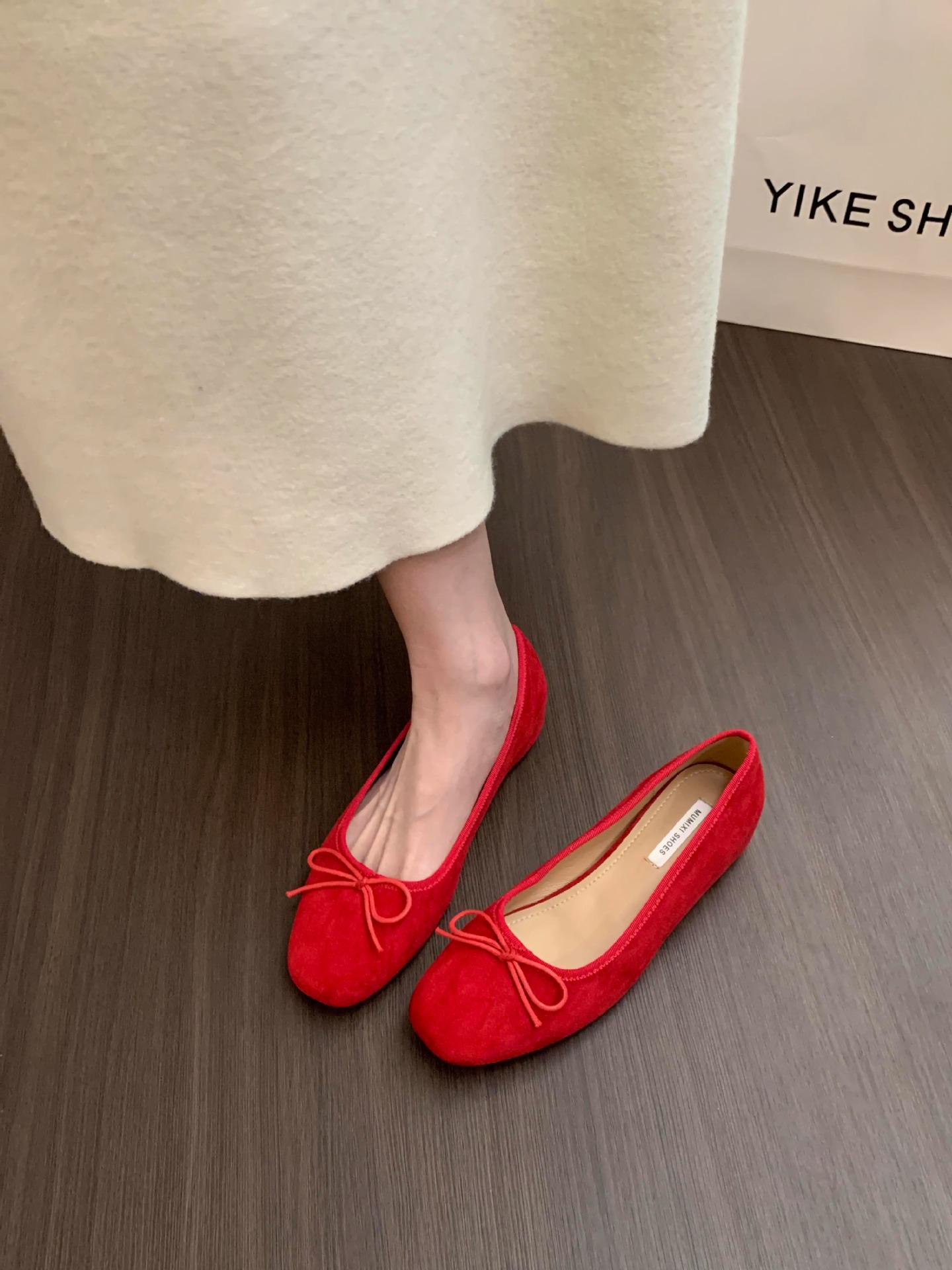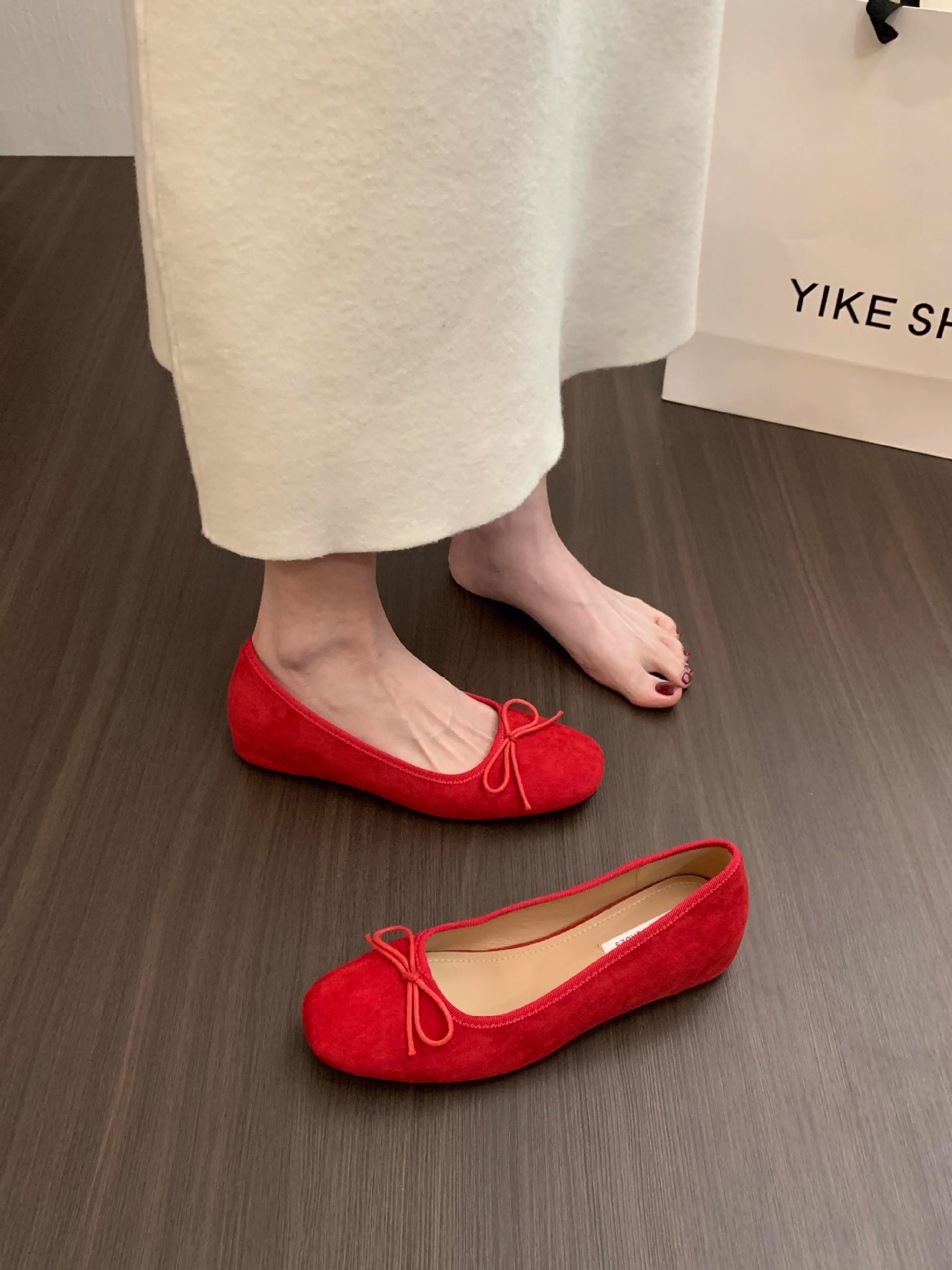 프렌치 스타일 키높이 발레 슈즈 여성화 2026년 신상 봄 가을 리본 레드 웨스트슈즈스토어 가기