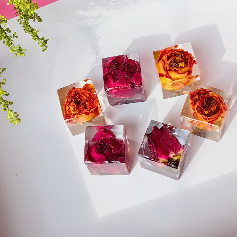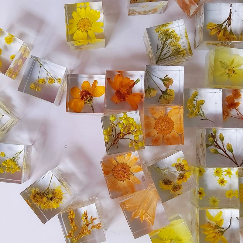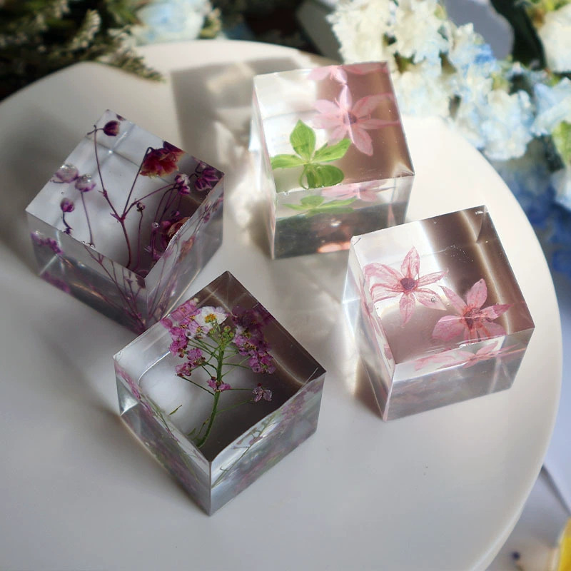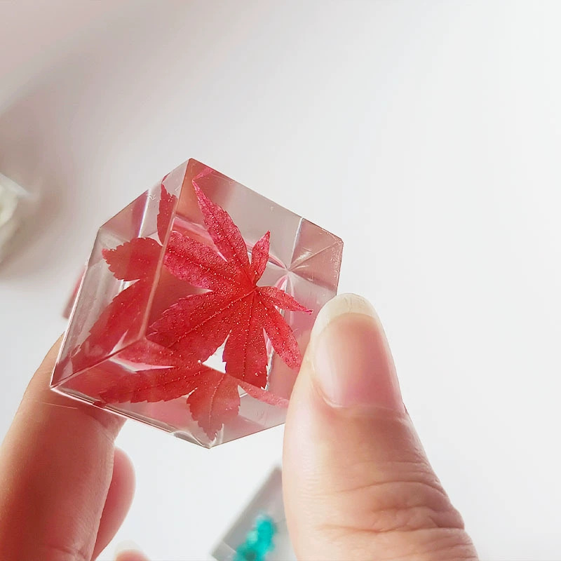 크리스탈 식물 표본 광장 완성 된 수제 젤 드롭 스테레오 말린 꽃 로즈 메이플 리프 창조적 인 선물 장식 장식품
