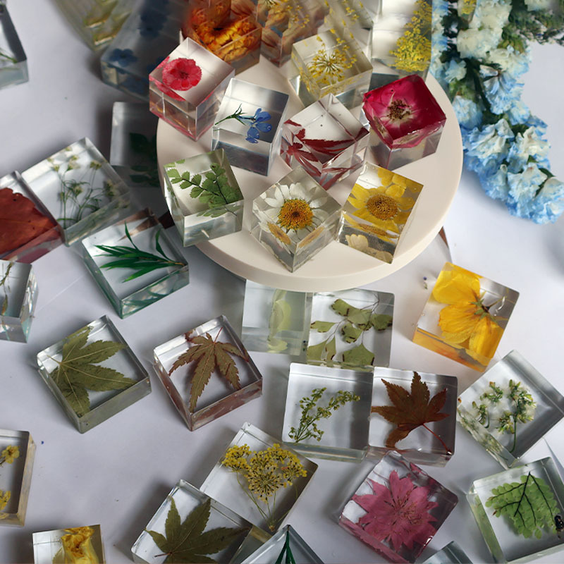 크리스탈 식물 표본 광장 완성 된 수제 젤 드롭 스테레오 말린 꽃 로즈 메이플 리프 창조적 인 선물 장식 장식품스토어 가기