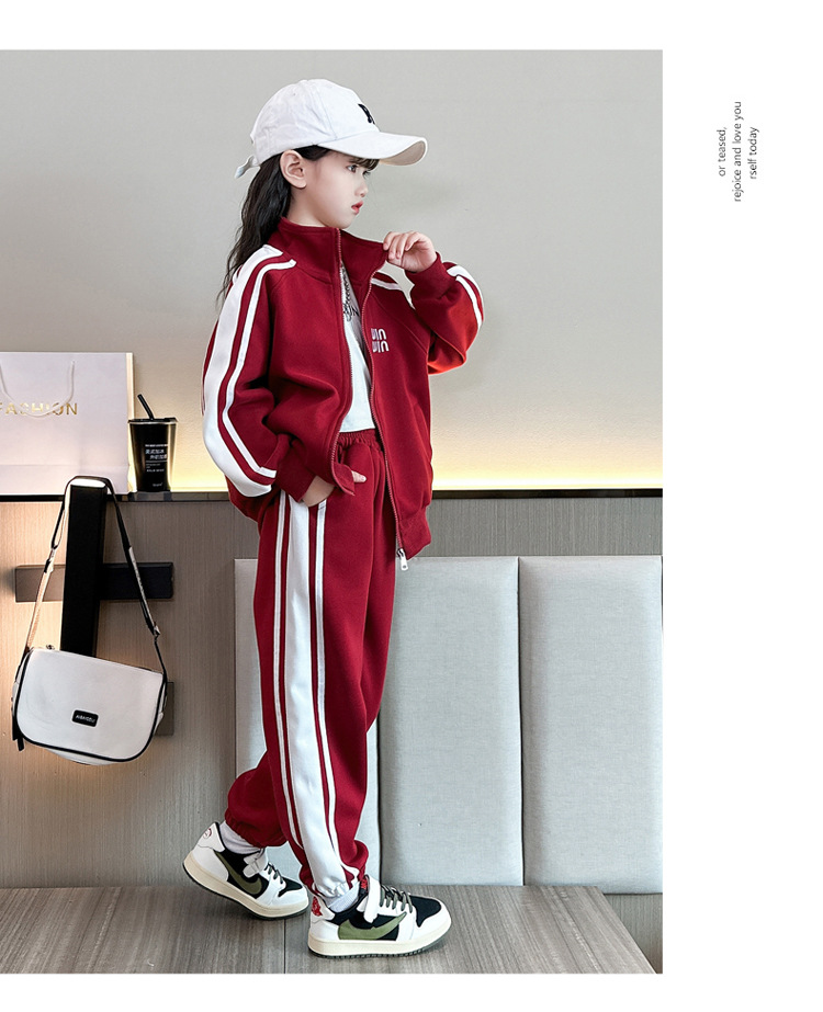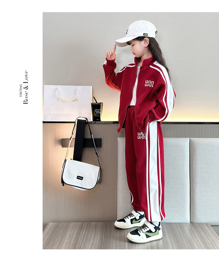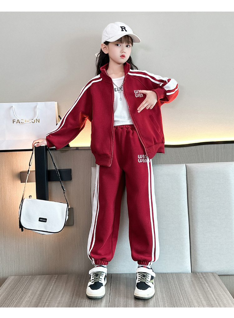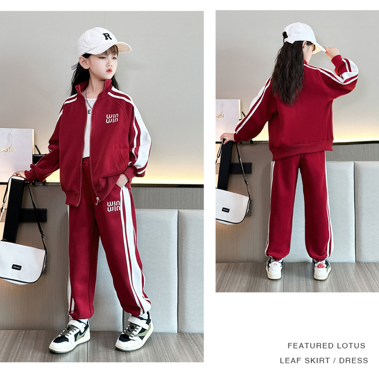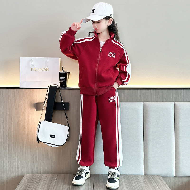 여자 스포츠웨어 세트 2025 봄과 가을 새로운 어린이 재킷 바지 투피스 면 캐주얼 캠퍼스 의류