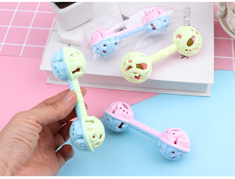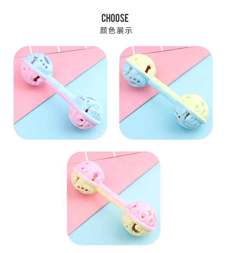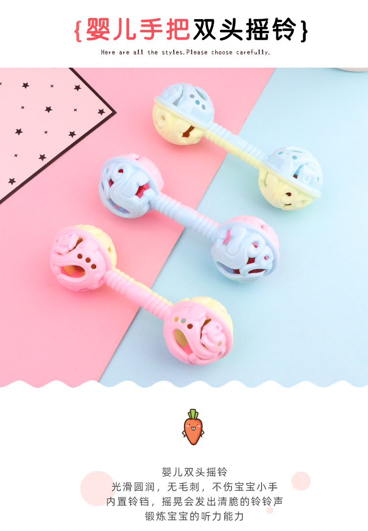 迷你双头手摇铃,尺寸:11.2*3.8CM,一箱1700个,单独OPP袋包装!颜色随机发!