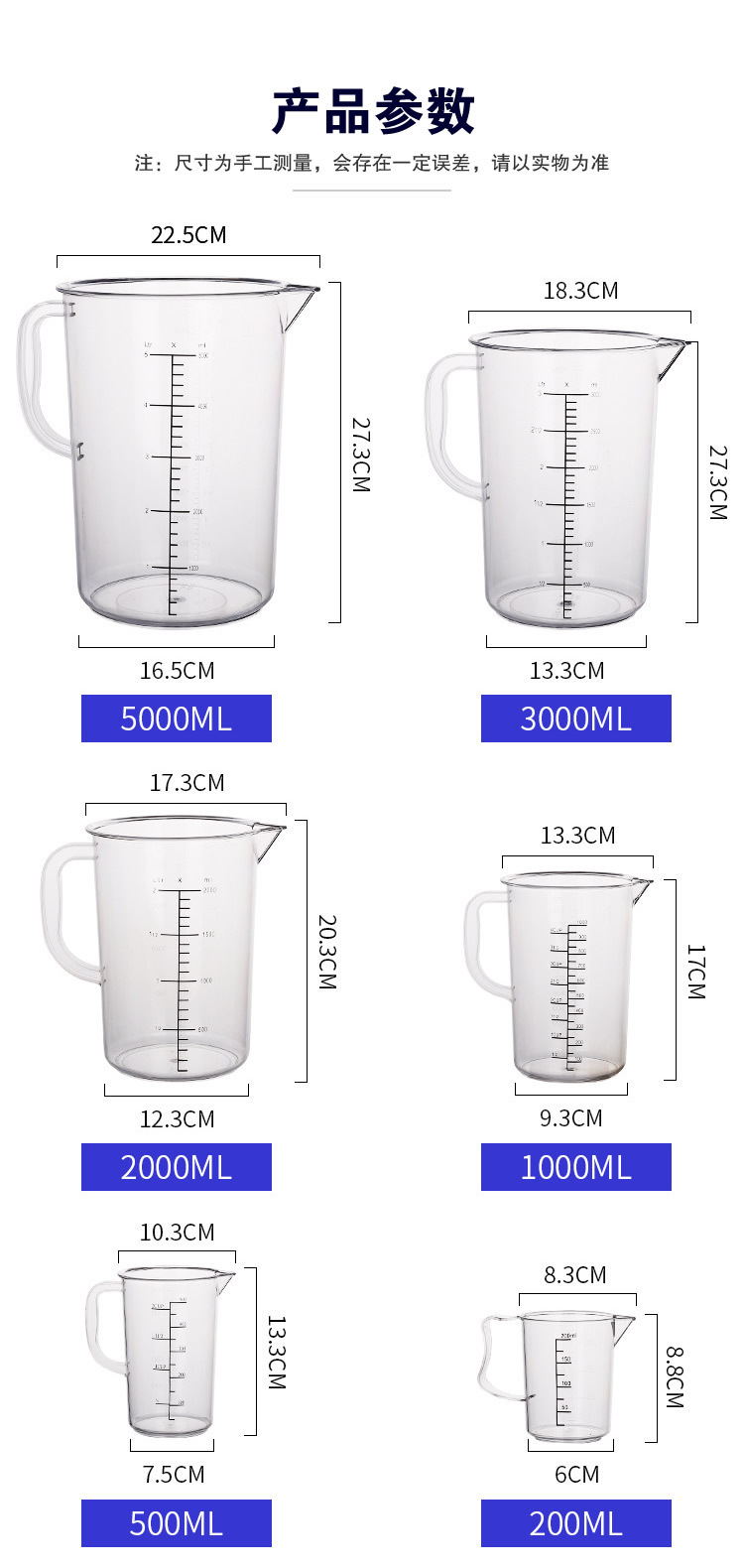PC 플라스틱 측정 컵 두껍게 두 배 큰 용량 주전자 우유 차 가게 도구 고온 투명 아크릴 측정 컵