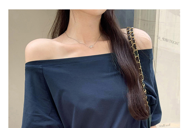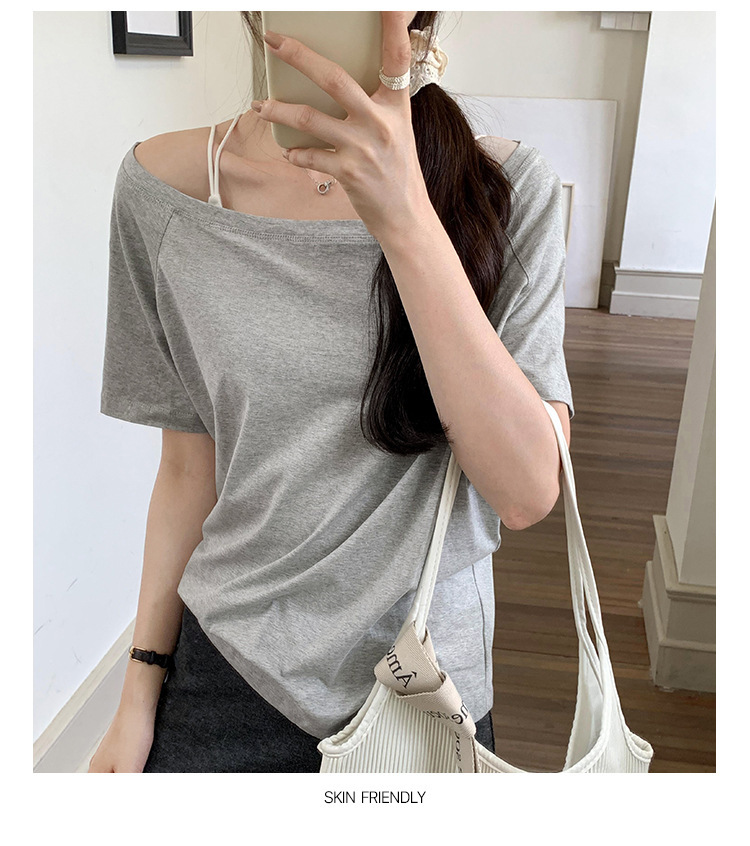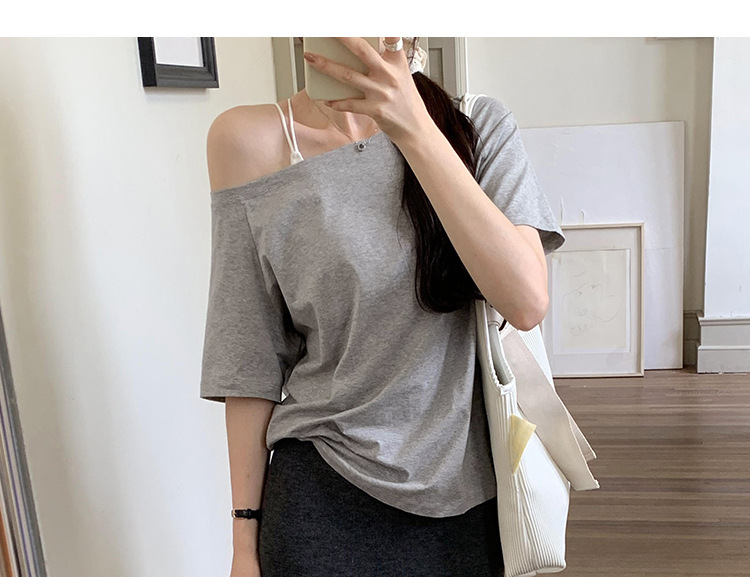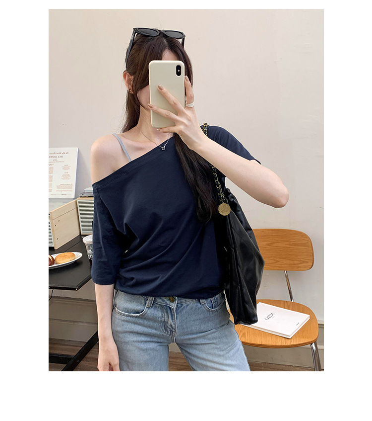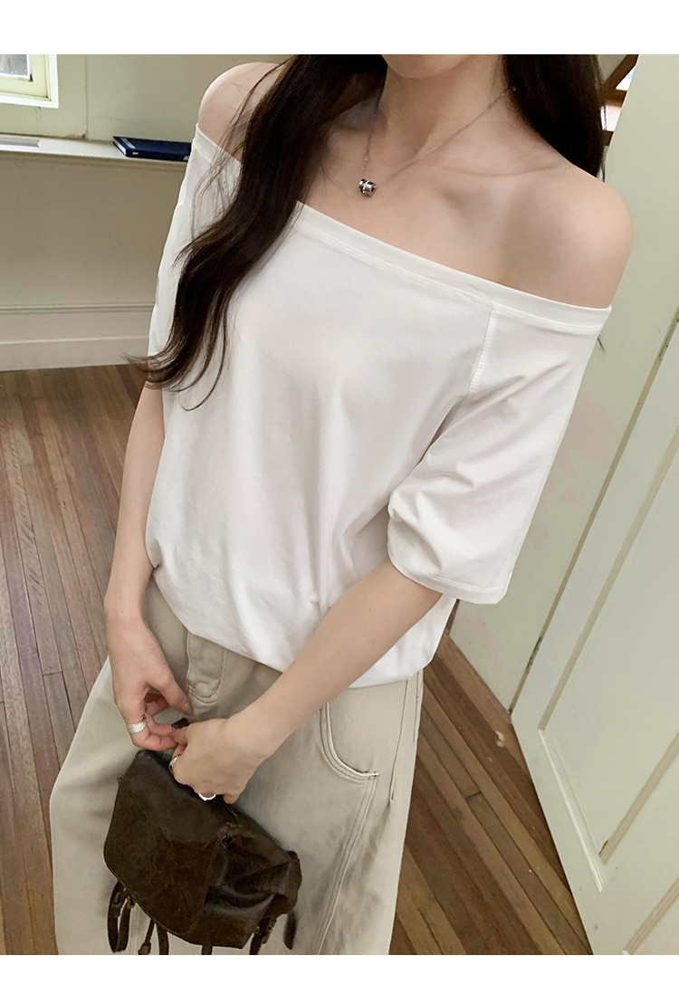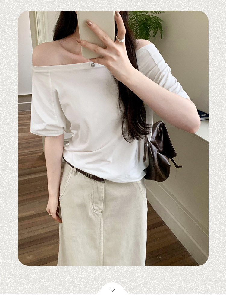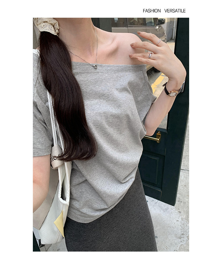이리나 2025 오프 라인 칼라 경사 숄더 짧은 소매면 티셔츠 여성용 여름 새로운 편안한 게으른 스타일 하이 엔드 탑
