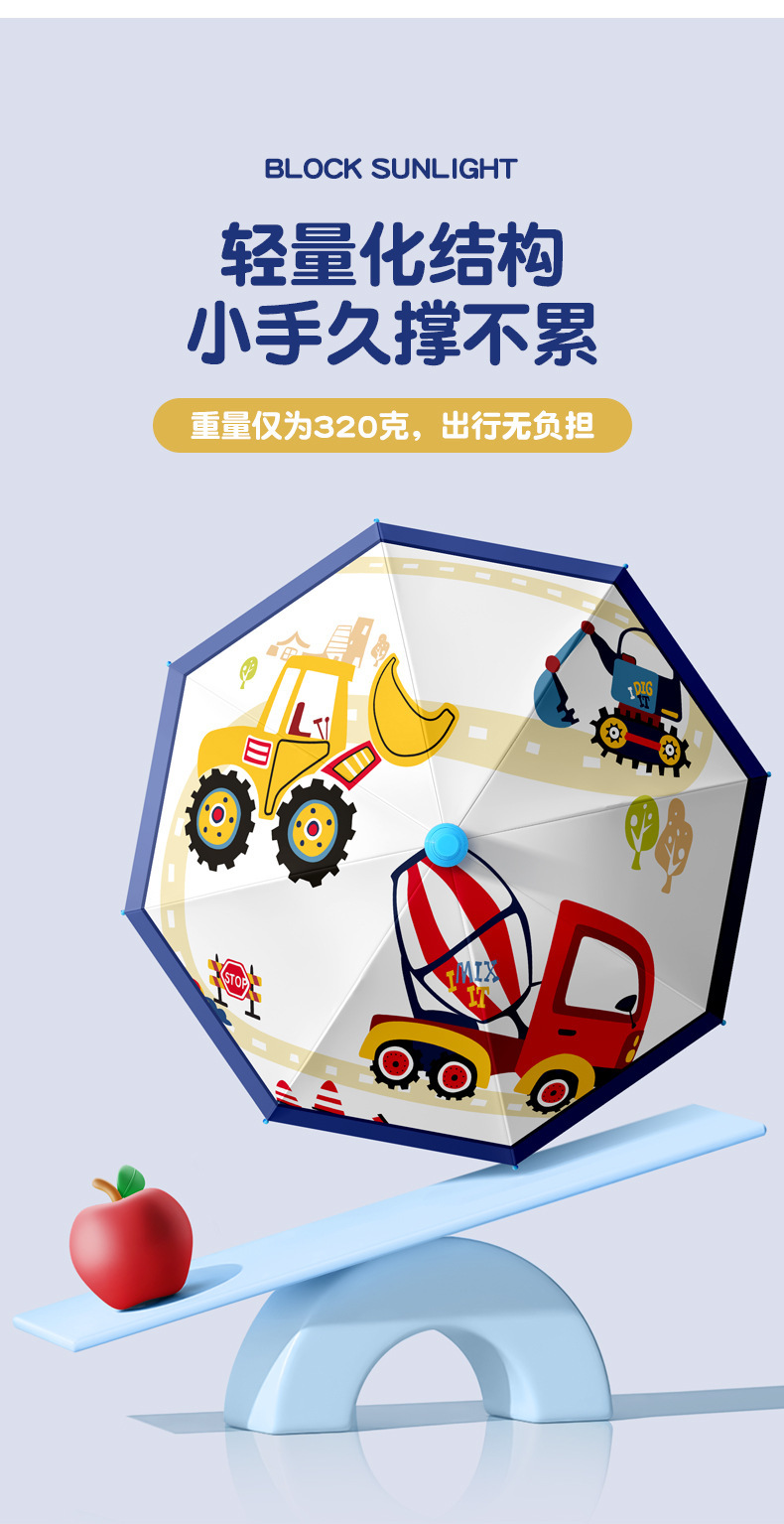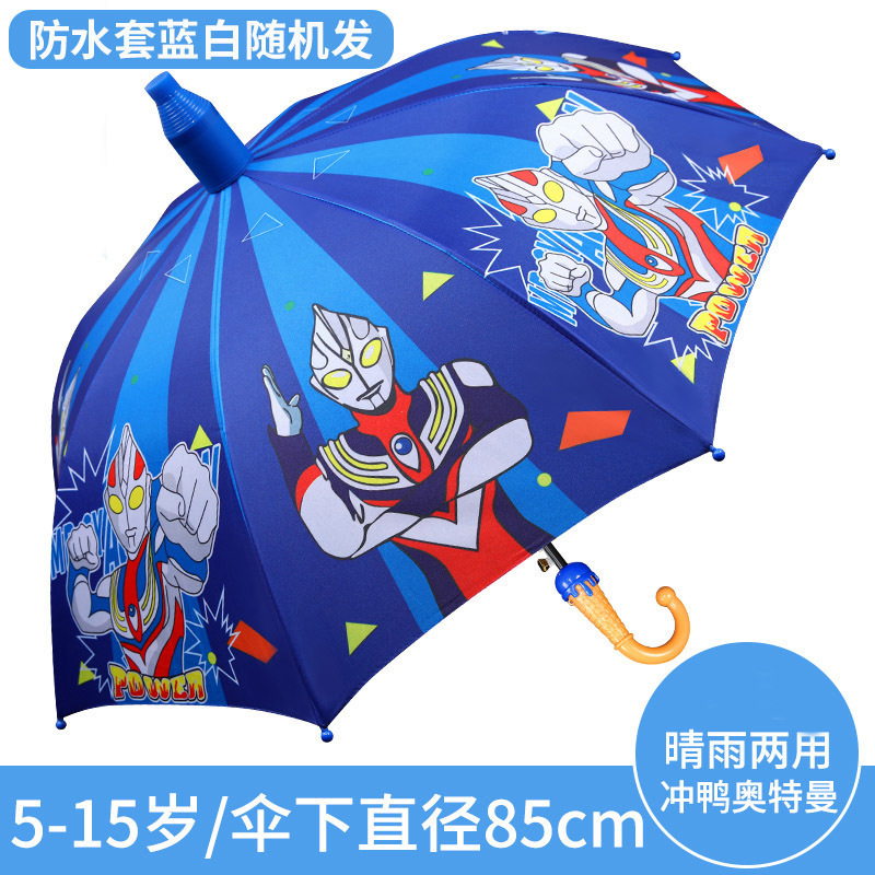 만화 스트레이트 로드 어린이 우산 둥근 반 찌르기 검은 고무 우산 소년과 소녀 및 초등학생을위한 경량 긴 손잡이 우산 도매스토어 가기