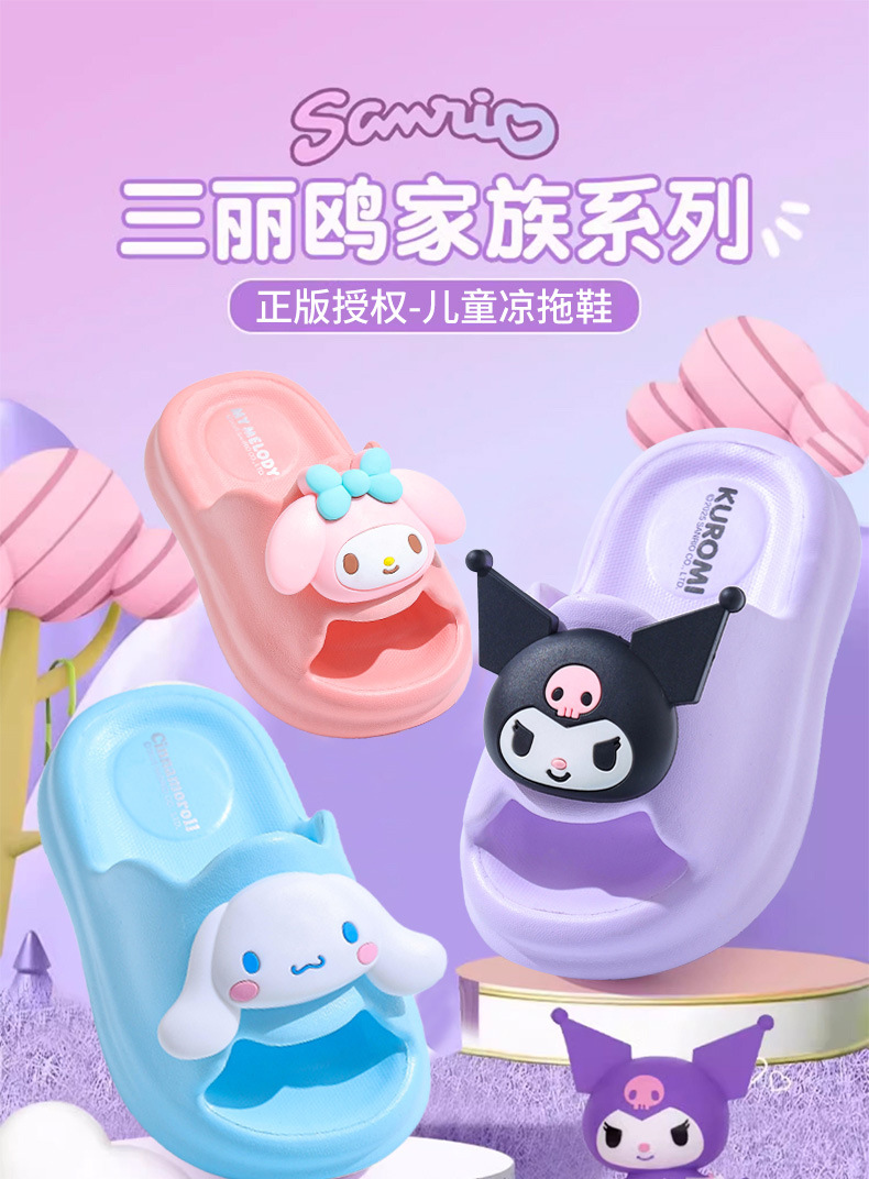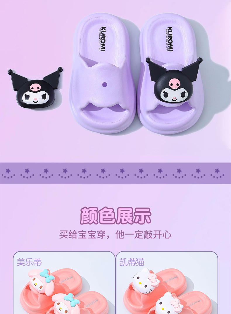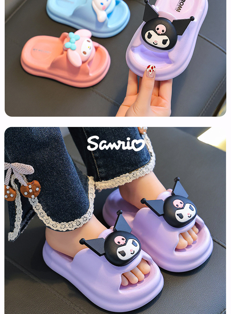 공장 도매 맞춤형 Kuromi 여름 어린이 샌들 소녀 부모-자식 미끄럼 방지 Sanrio 소녀 샌들스토어 가기
