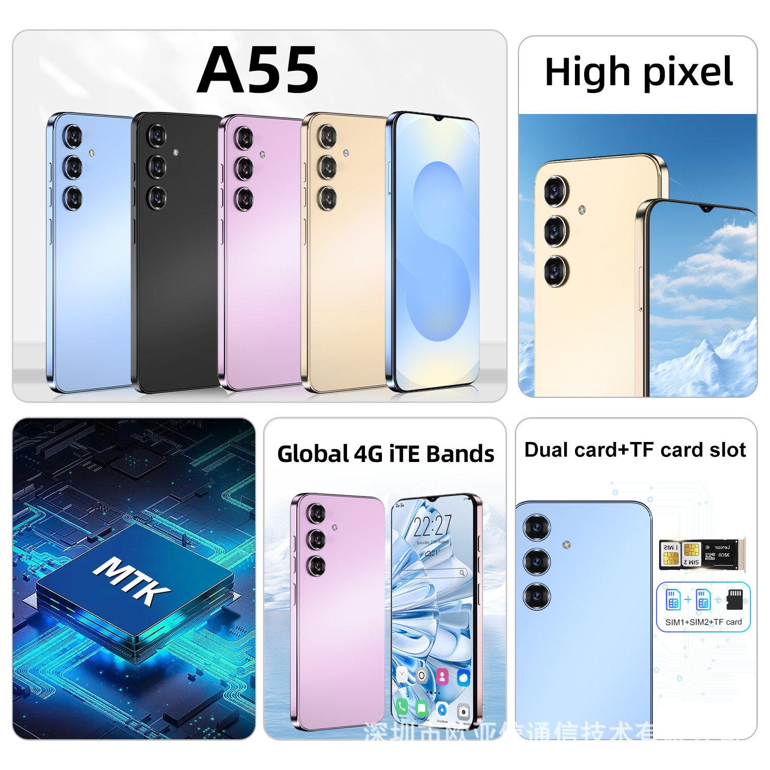 2025 새로운 국경 스마트 폰 A55 PROMax 올인원 AliExpress 뜨거운 판매 휴대 전화 도매 주문