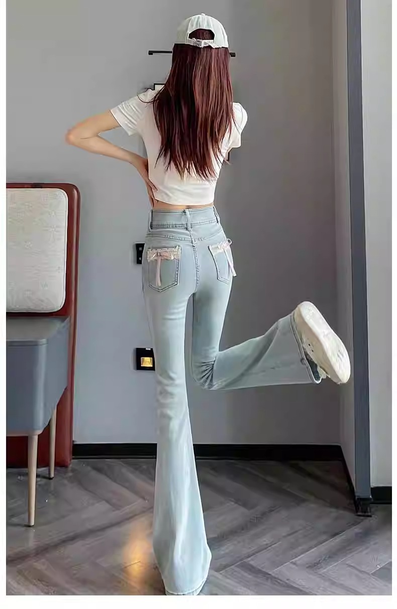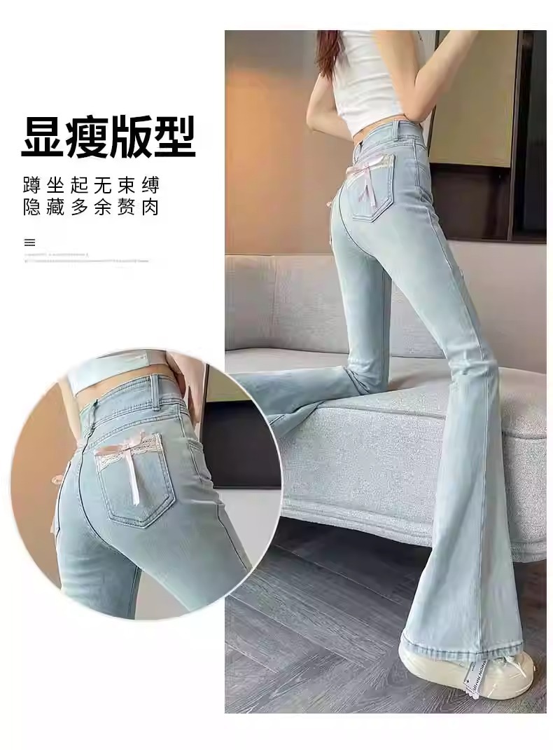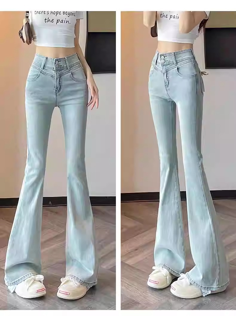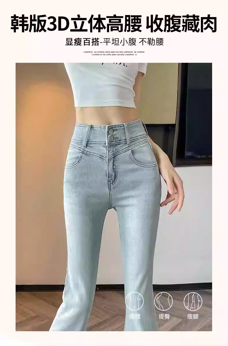 플러스 사이즈 밝은 색상의 마이크로 라드 청바지 여성용 트렌디 올매치 하이 웨이스트 힙 리프팅 바지