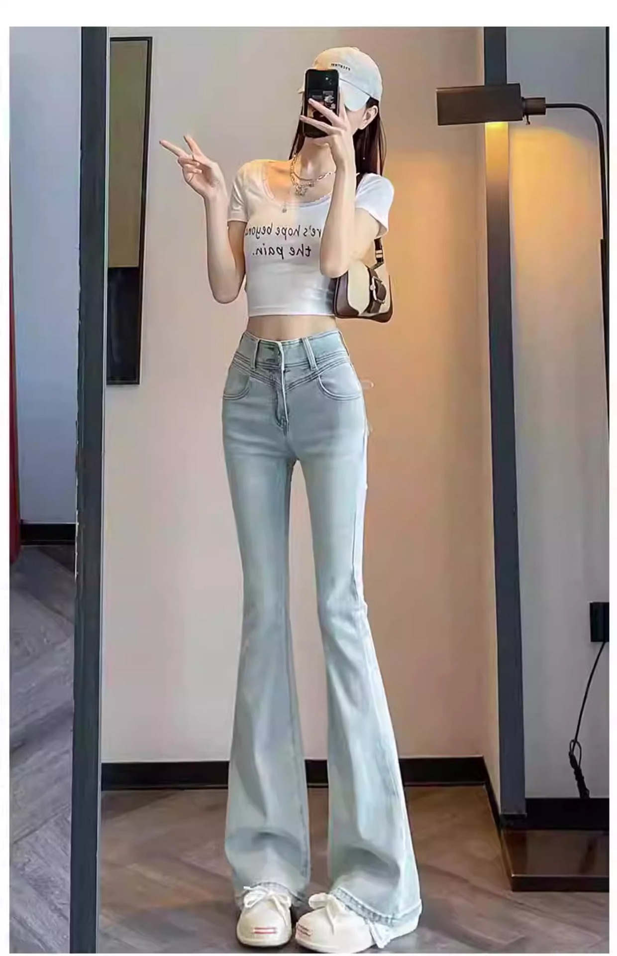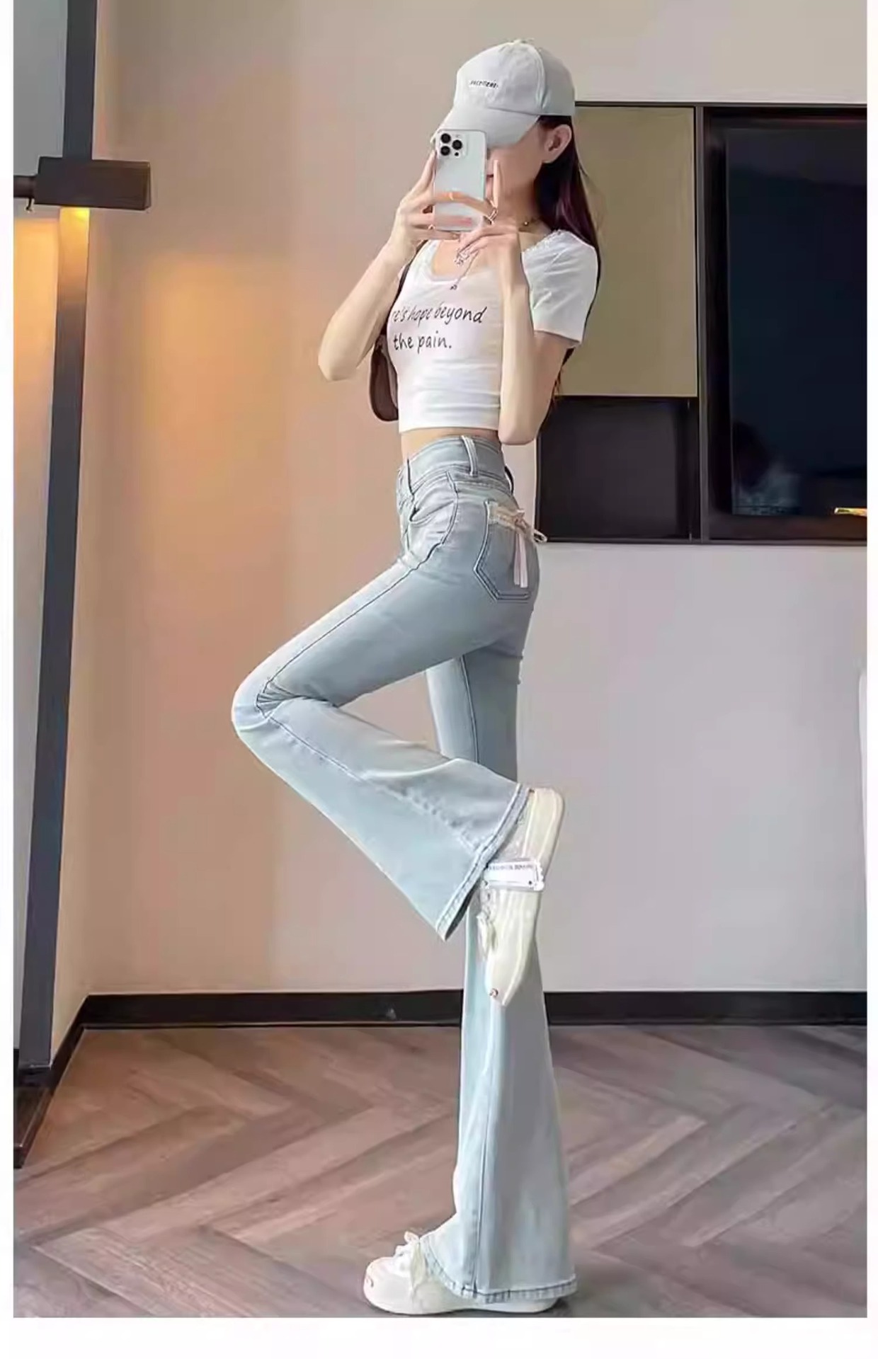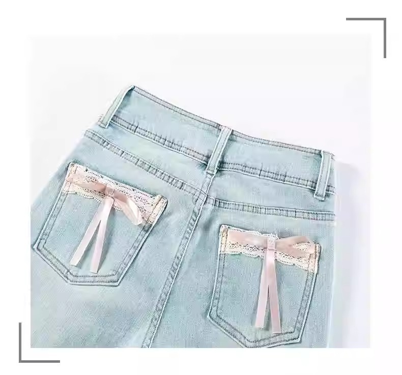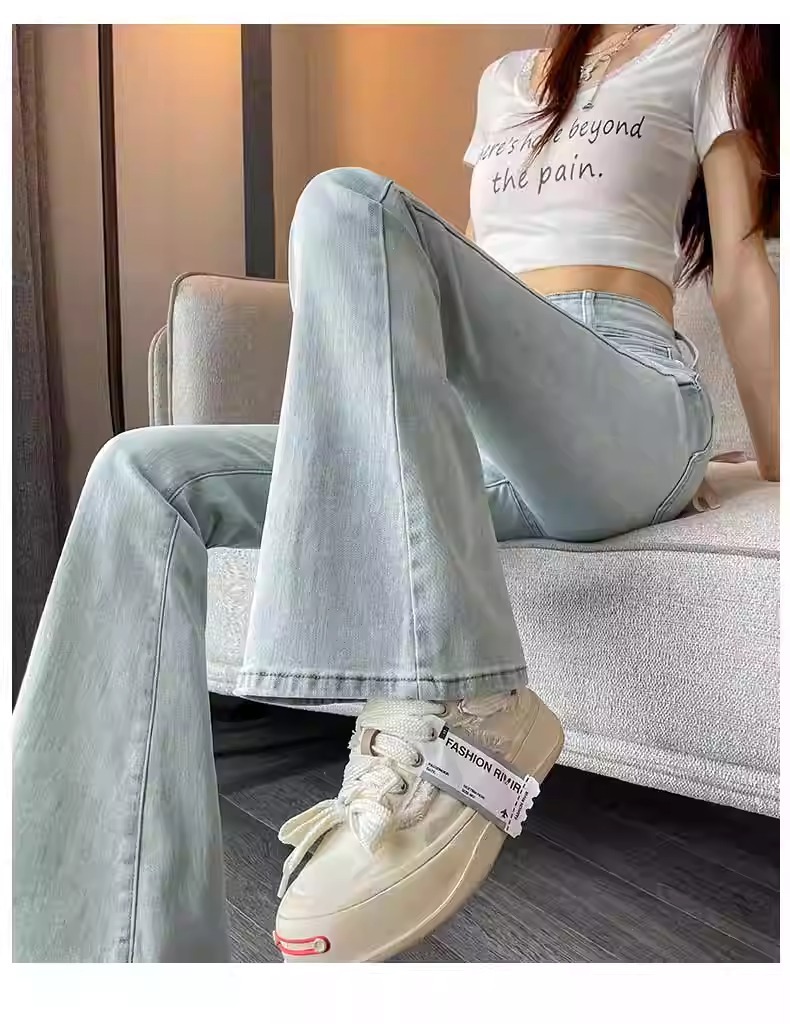 플러스 사이즈 밝은 색상의 마이크로 라드 청바지 여성용 트렌디 올매치 하이 웨이스트 힙 리프팅 바지