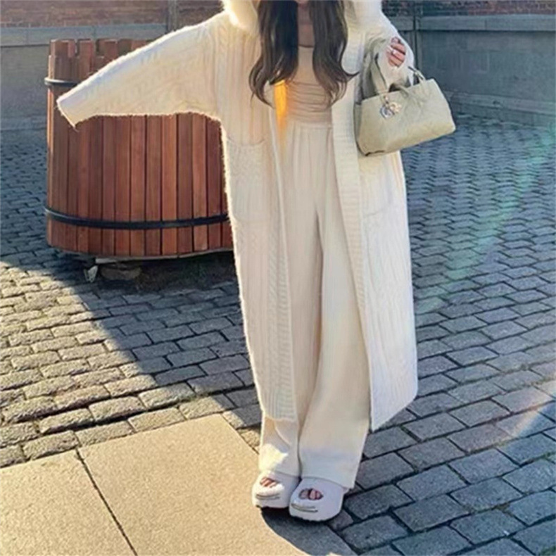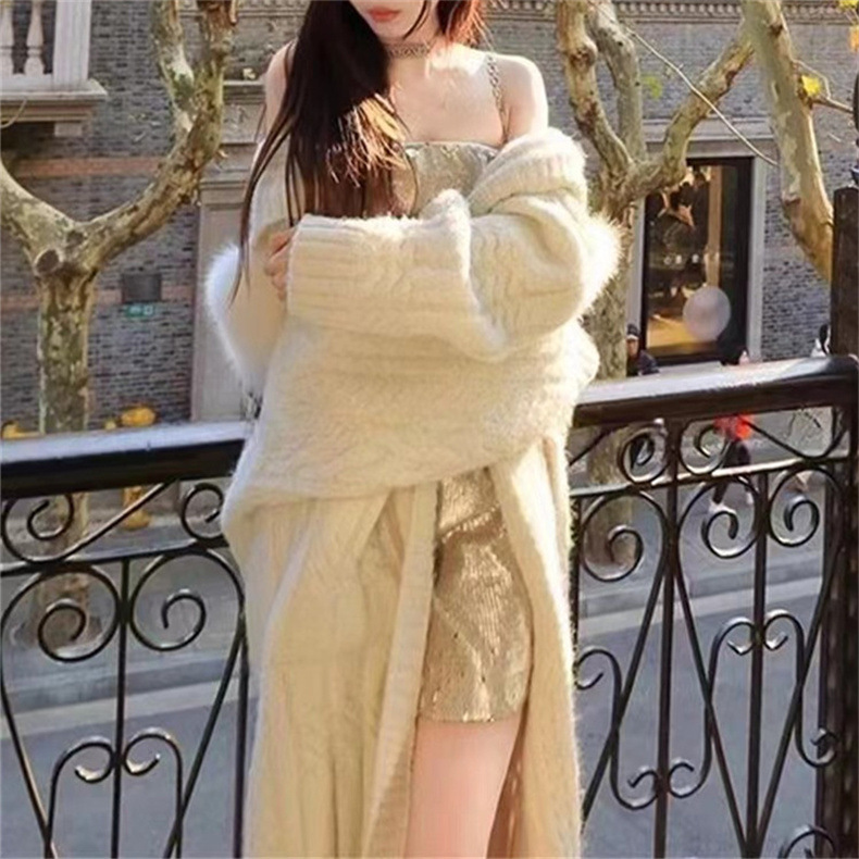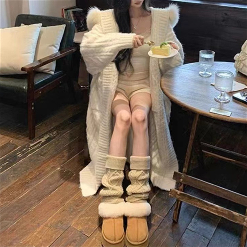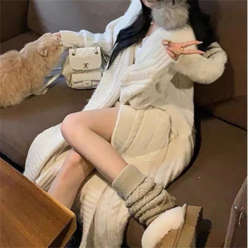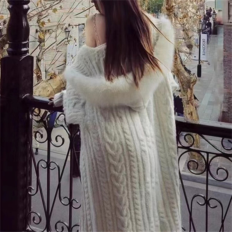 솔리드 컬러 스웨터 코트 여성 가을과 겨울 게으른 스타일 연예인 우아한 카디건 모방 폭스 모피 칼라 후드 케이프 코트스토어 가기