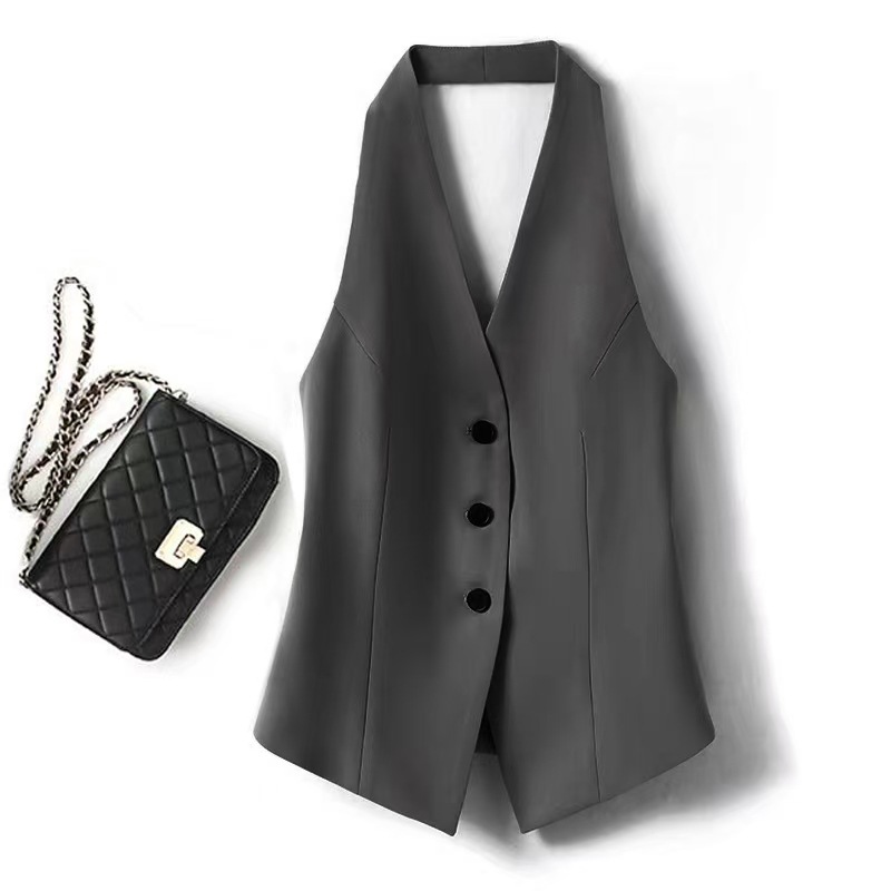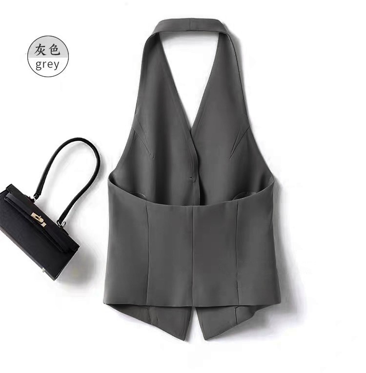 회색 목 세트 조끼 여성 2025 년 봄과 여름 새로운 디자인 센스 슬리밍 백리스 우아한 작은 왁스 코트