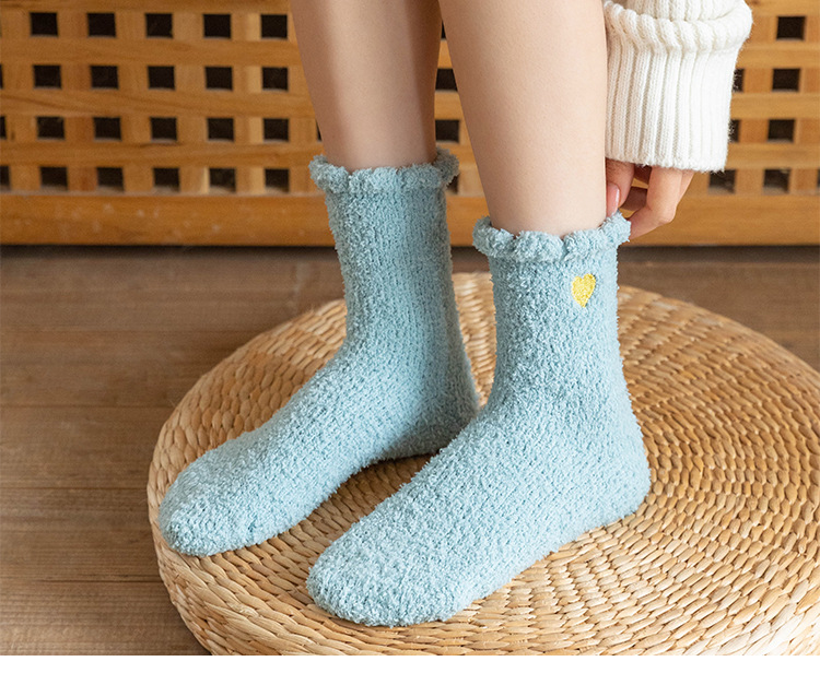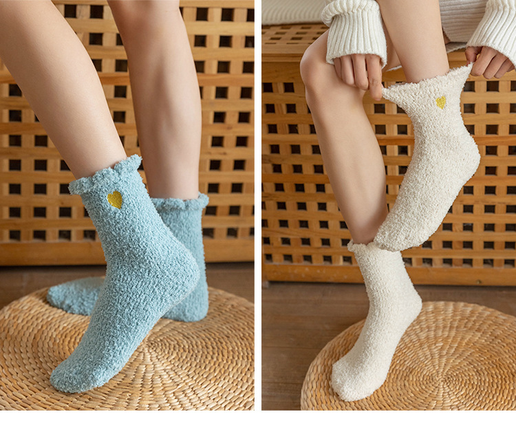 국경 간 산호 벨벳 양말 여성 양말 겨울 기모 두꺼운 겨울 감금 산후 수면 수건 바닥 양말