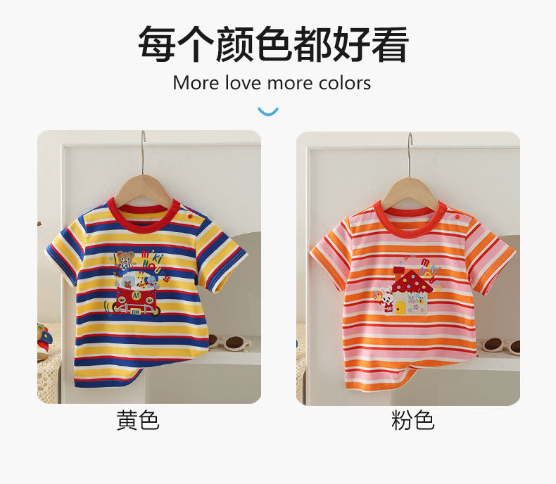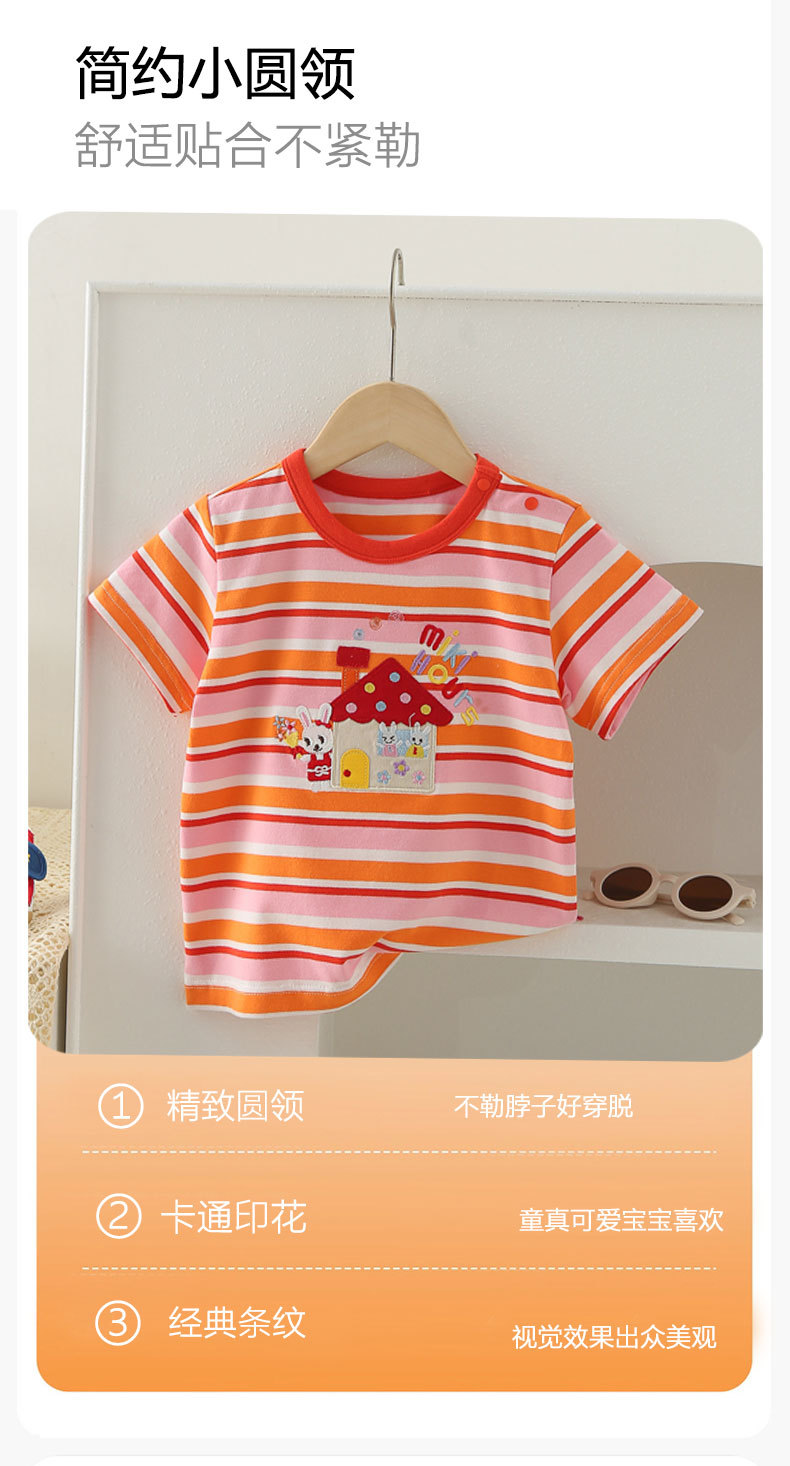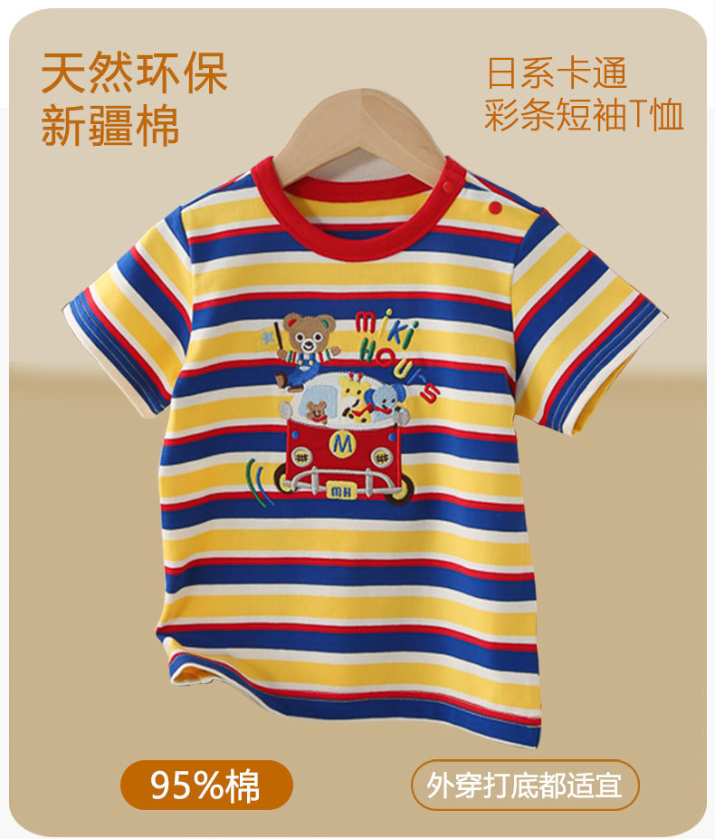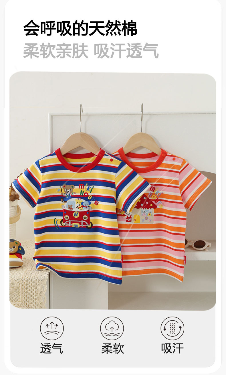 Mikihours 봄과 여름 새로운 어린이 줄무늬 반팔 티셔츠 일본 인쇄 캐주얼 아동복 여름 남성과 여성의 탑스토어 가기