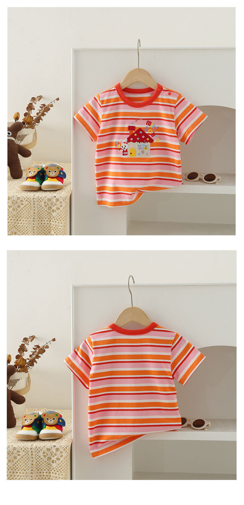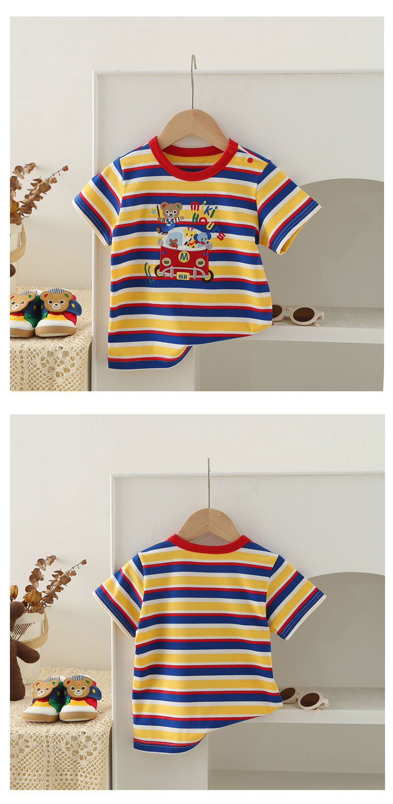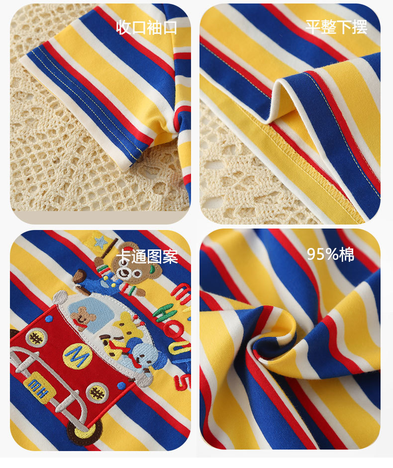 Mikihours 봄과 여름 새로운 어린이 줄무늬 반팔 티셔츠 일본 인쇄 캐주얼 아동복 여름 남성과 여성의 탑스토어 가기